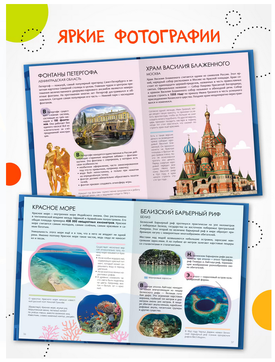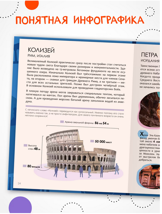 Книга – идеальный подарок для любознательного ребенка. Благодаря этой книжке ребенок сможет поближе познакомиться с разными чудесами света: «классическими» древними, чудесами Средневековья, природы и подводного мира, а также чудесами России. Интересные факты проиллюстрированы яркими фотографиями и понятной инфографикой, которые помогут полностью погрузиться в изучение предмета и узнать новое об окружающем мире.
