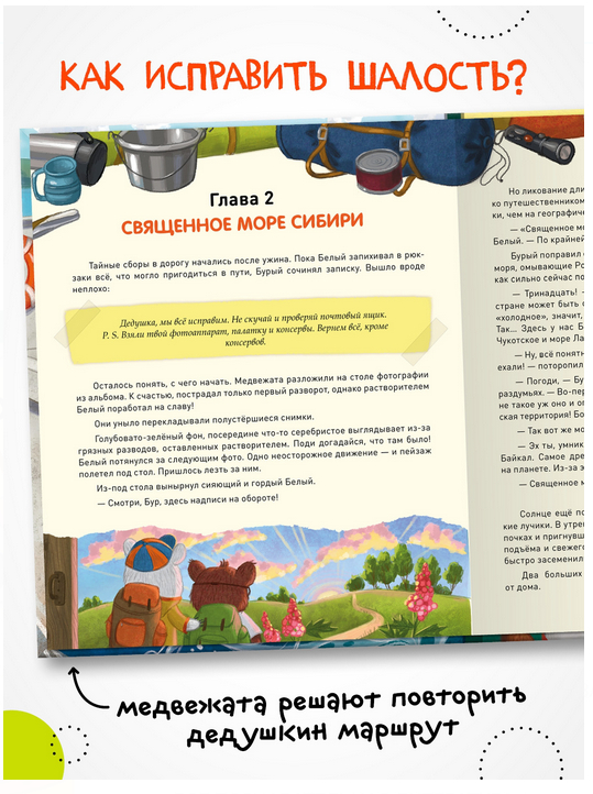 На страницах с яркими иллюстрациями вас ждет не только захватывающая история о путешествии двух отважных медвежат по России, но и познавательные вставки с интересными фактами, которые расширят кругозор не только детей, но и взрослых.