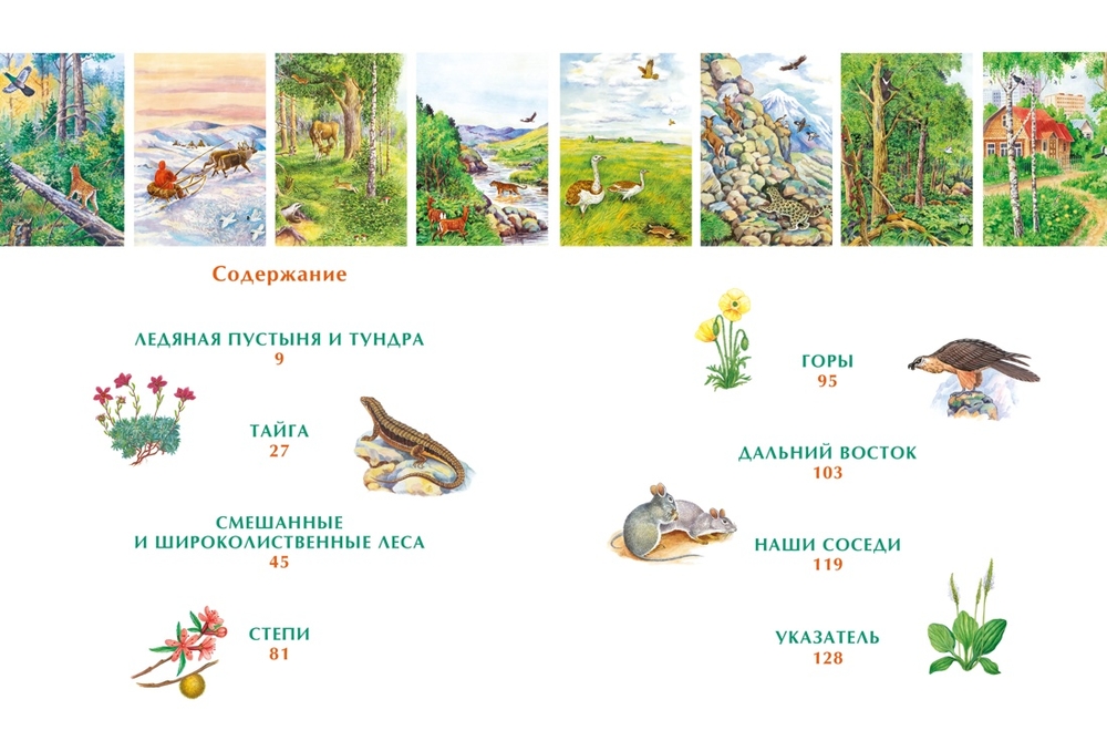 Эта книга знакомит читателей с климатическими и природными зонами России, с ее богатейшим растительным и животным миром. В энциклопедии наиболее полно отражены представители флоры и фауны, встречающиеся на территории нашей страны. Красочные и точные иллюстрации дают возможность лучше узнать природу родного края, научиться распознавать животных и растения разных природных зон, а живые подробные описания будут полезны и интересны всем.