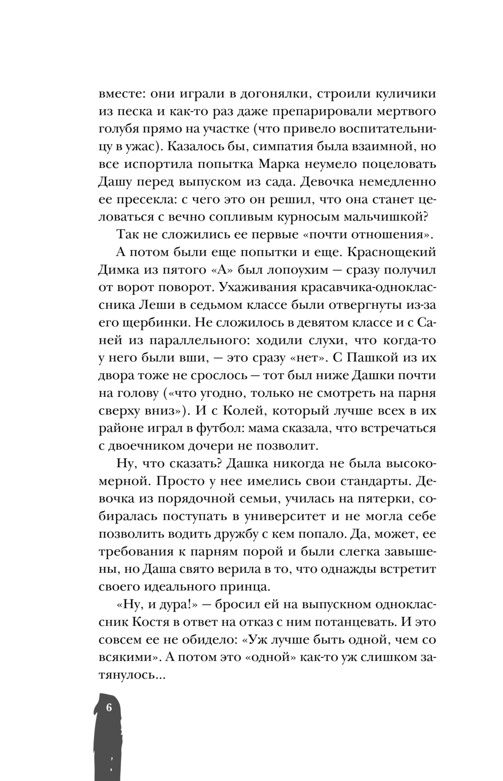 Даша – скромница и мечтательница. Она верит в настоящую любовь, но в личной жизни её преследуют неудачи, а поиски идеального мужчины давно зашли в тупик.