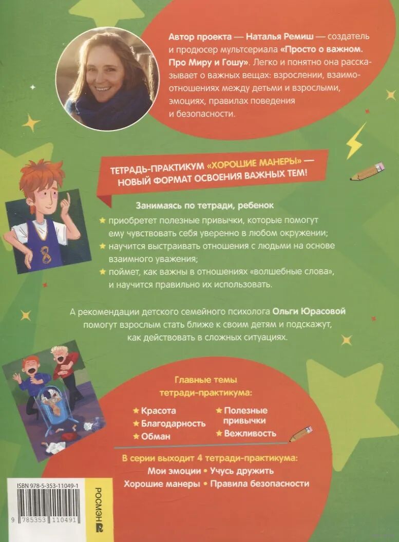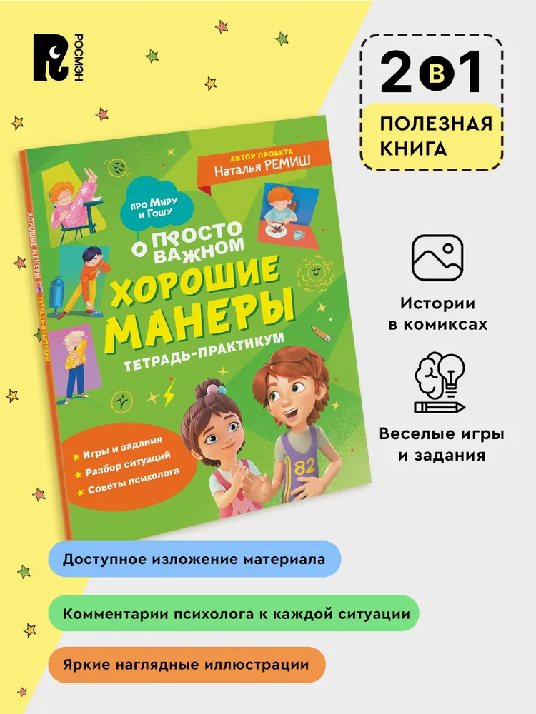 Тетрадь-практикум с веселыми заданиями и полезными историями про Миру и Гору от писательницы и продюсера Натальи Ремиш. Разбор ситуаций в формате комикса, рекомендации и подсказки для взрослых, советы детского семейного психолога. Издание станет отличным подарком детям от 5 лет, их родителям и всем поклонникам мультсериала. Как и все дети, главные герои познают мир, играют, иногда ссорятся и попадают в трудные ситуации: дома, в школе или во дворе.