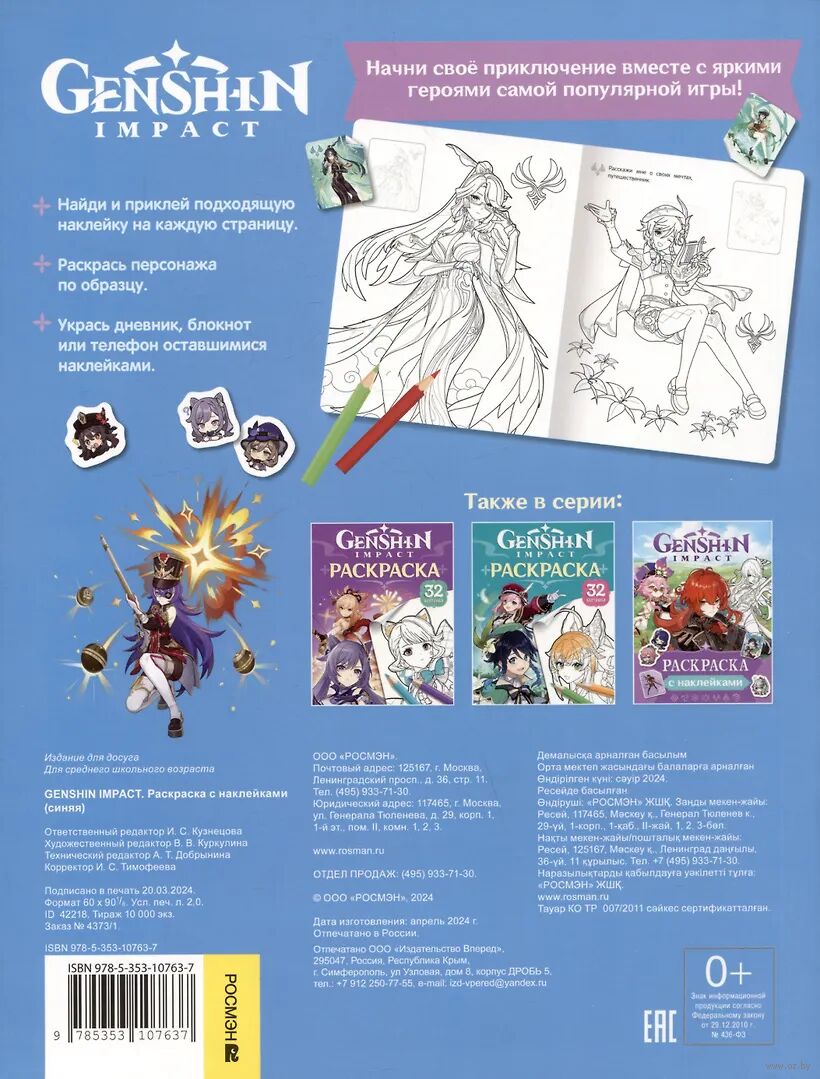 Genshin Impact. Раскраска с наклейками (синяя)
