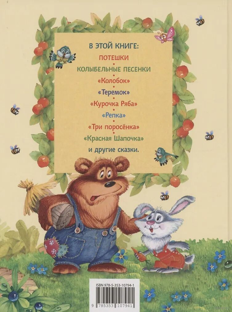 В сборник вошли русские народные сказки для самых маленьких: "Колобок", "Теремок", "Курочка Ряба", "Репка" и многие другие, а также потешки и колыбельные песенки. Книга с яркими, смешными иллюстрациями обязательно понравится каждому ребенку.
