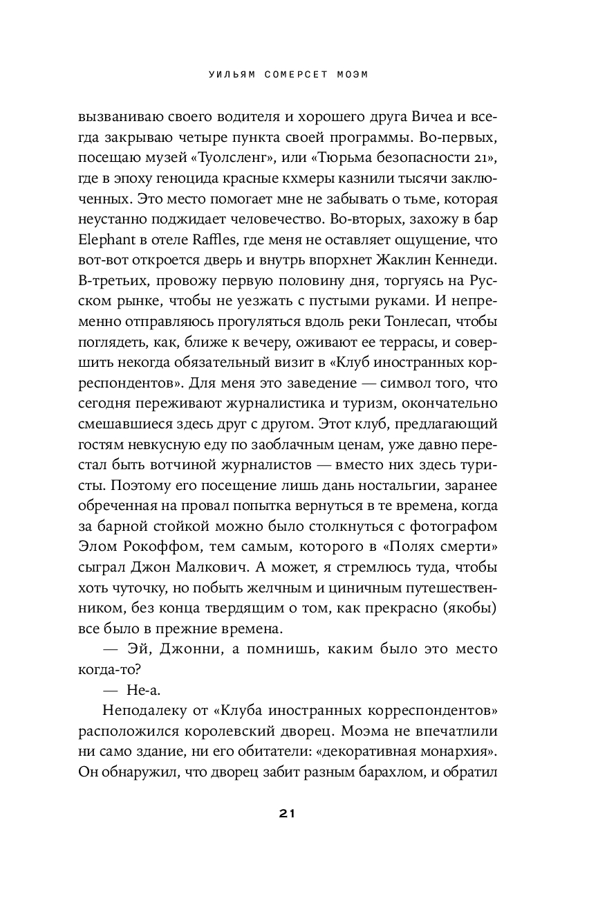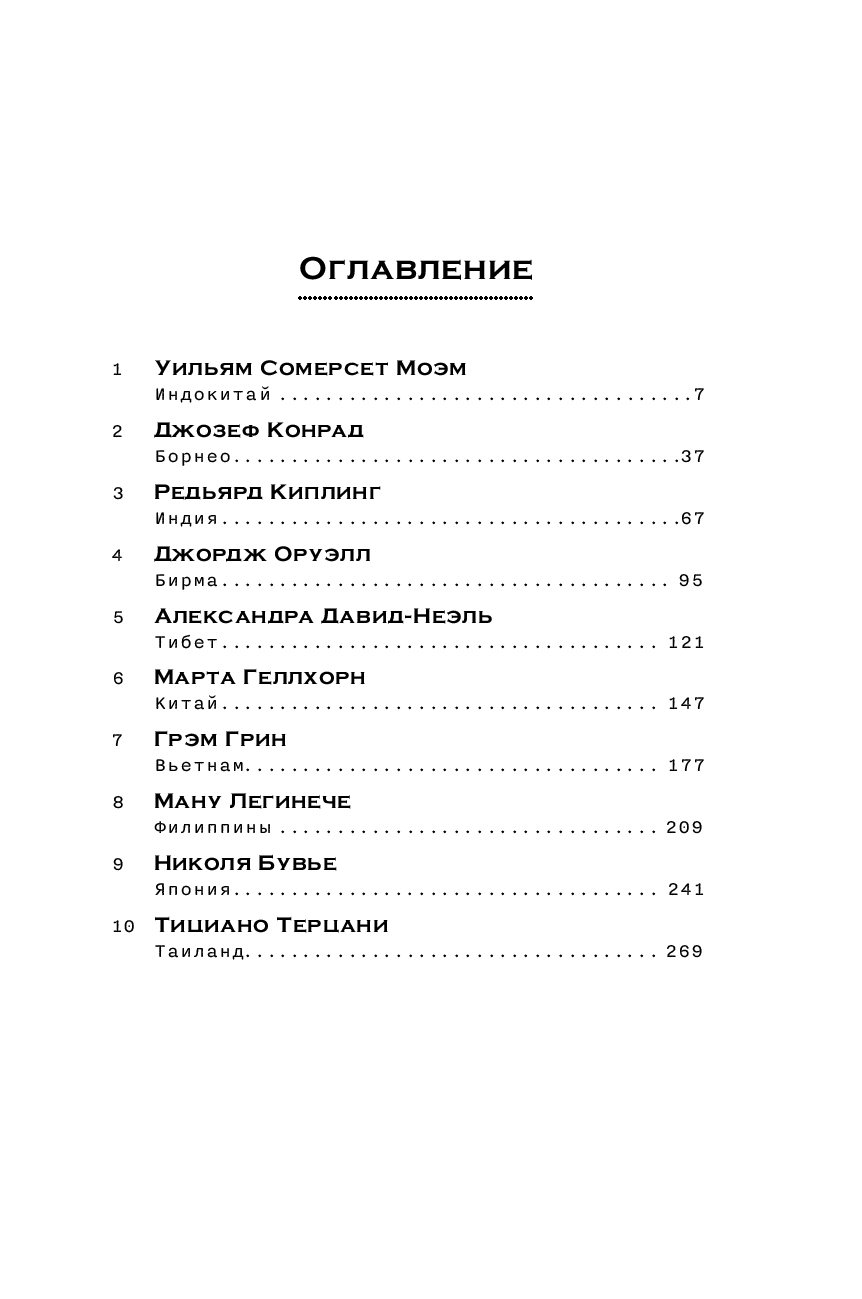 Автор, проживший почти два десятилетия в Юго-Восточной Азии, идет по стопам Редьярда Киплинга, Уильяма Сомерсета Моэма, Джорджа Оруэлла, Джозефа Конрада и других известных писателей. Он посещает места действия их книг, чтобы понять: что именно влекло знаменитостей в эти края и что осталось от Востока, вдохновлявшего литературных деятелей, а что безвозвратно исчезло.