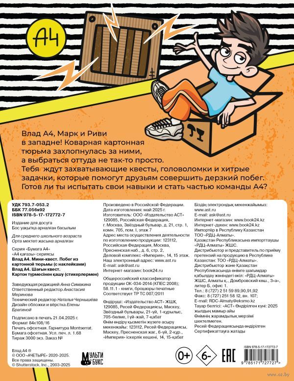 Вашему вниманию представлена книга "Влад А4. Мини-квест. Побег из картонной тюрьмы".