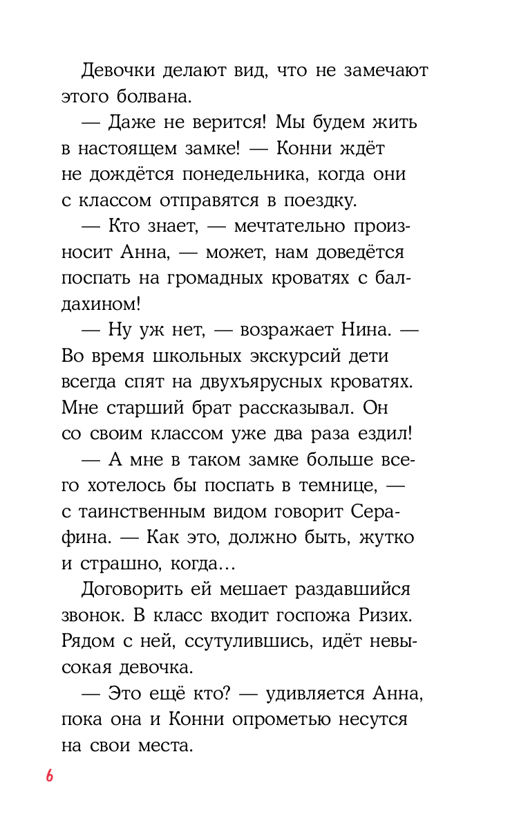 Конни с подружками так ждали эту поездку с классом в старинный замок! Но внезапное появление новенькой чуть не нарушило все планы. Смогут ли ребята найти общий язык и хорошо провести время, или проклятье привидений замка испортит всё удовольствие?