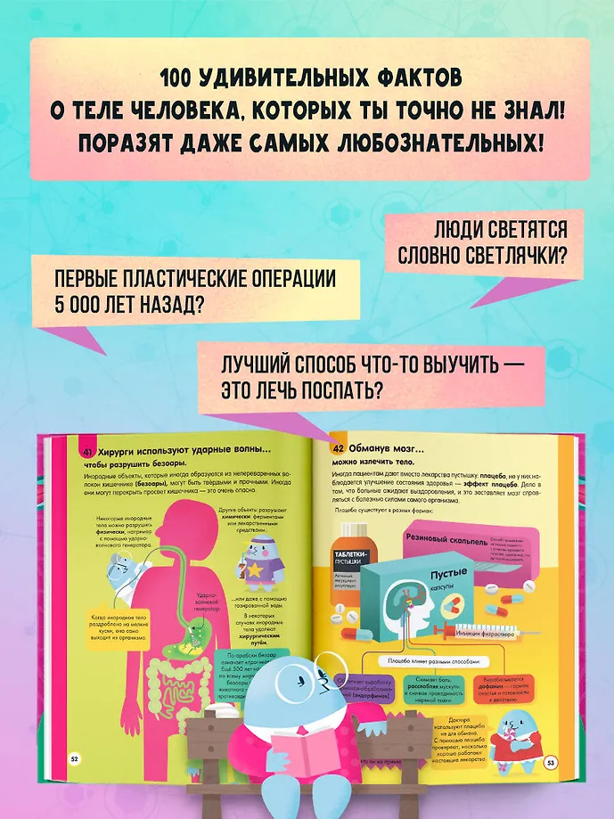 Эта информативная книга с красочными иллюстрациями содержит удивительные факты и полезную информацию ровно по 100 темам, касающимся человеческого тела. Ты узнаешь много нового, о чём точно не читал в учебниках, а благодаря инфографике вся сложная информация усвоится легко и быстро.