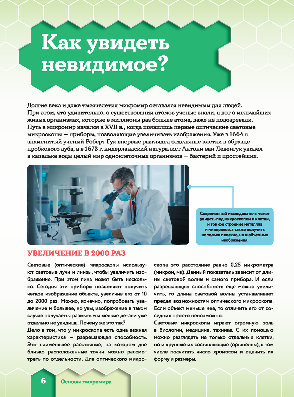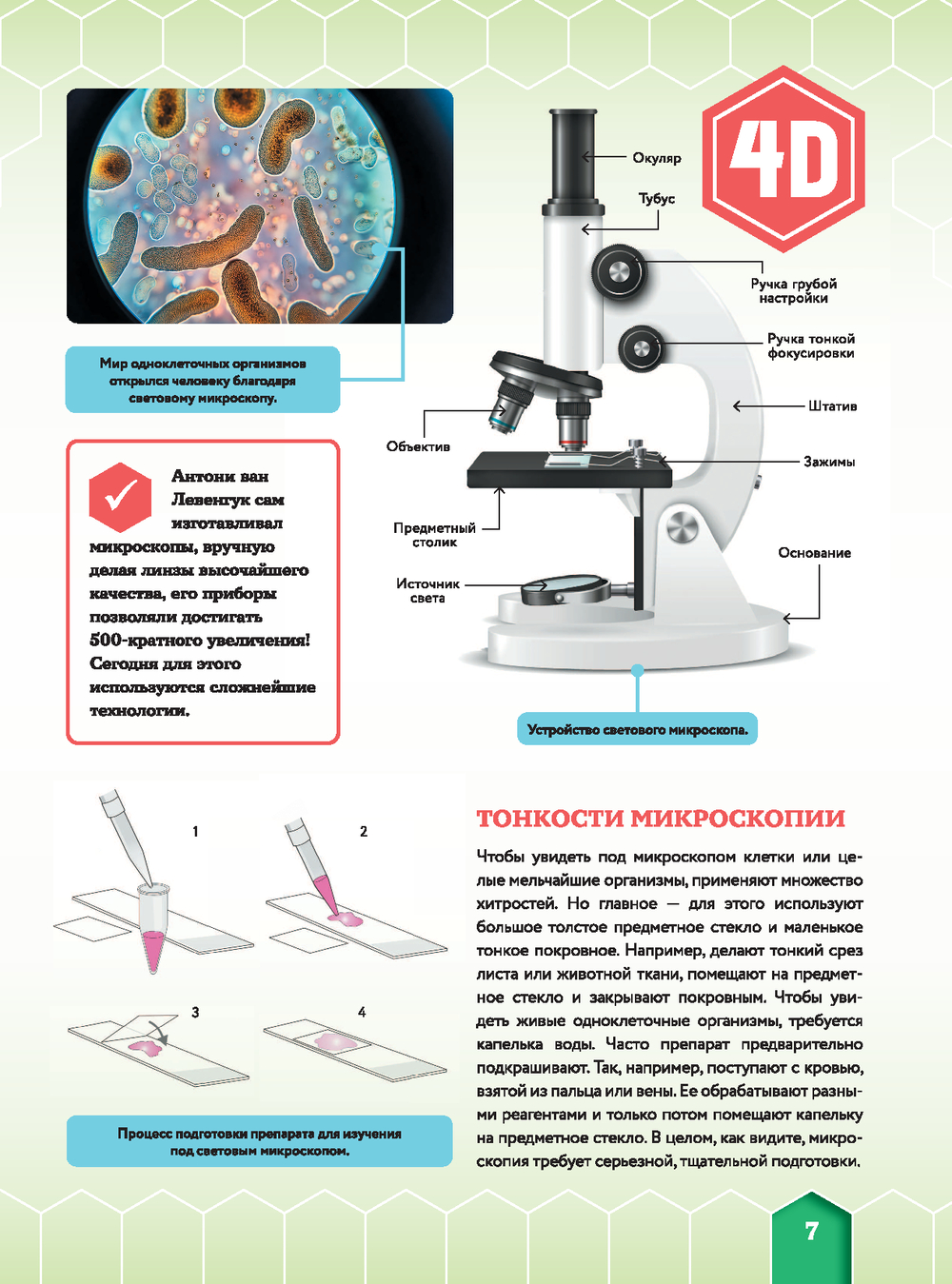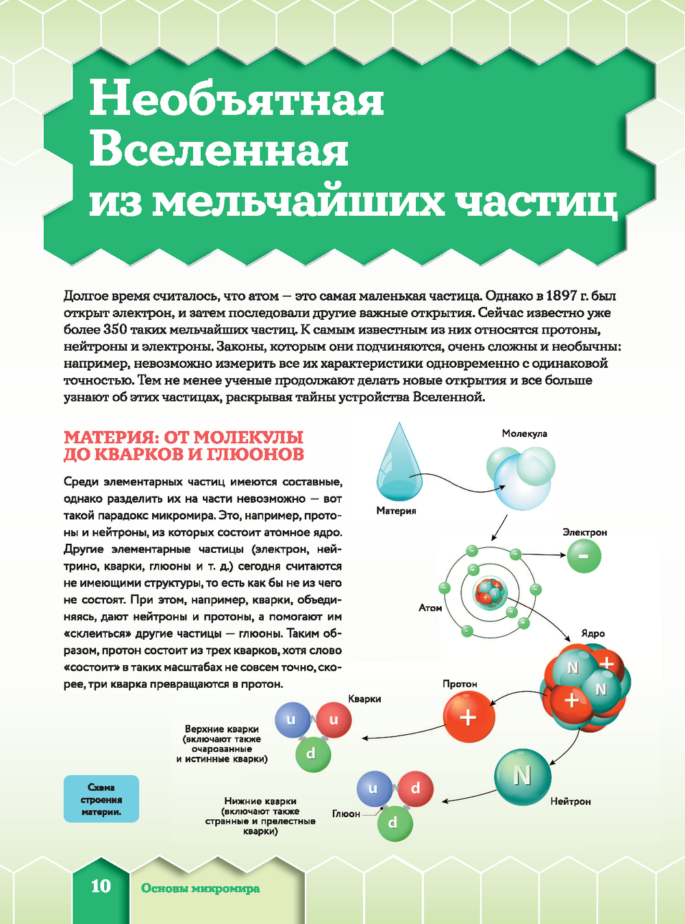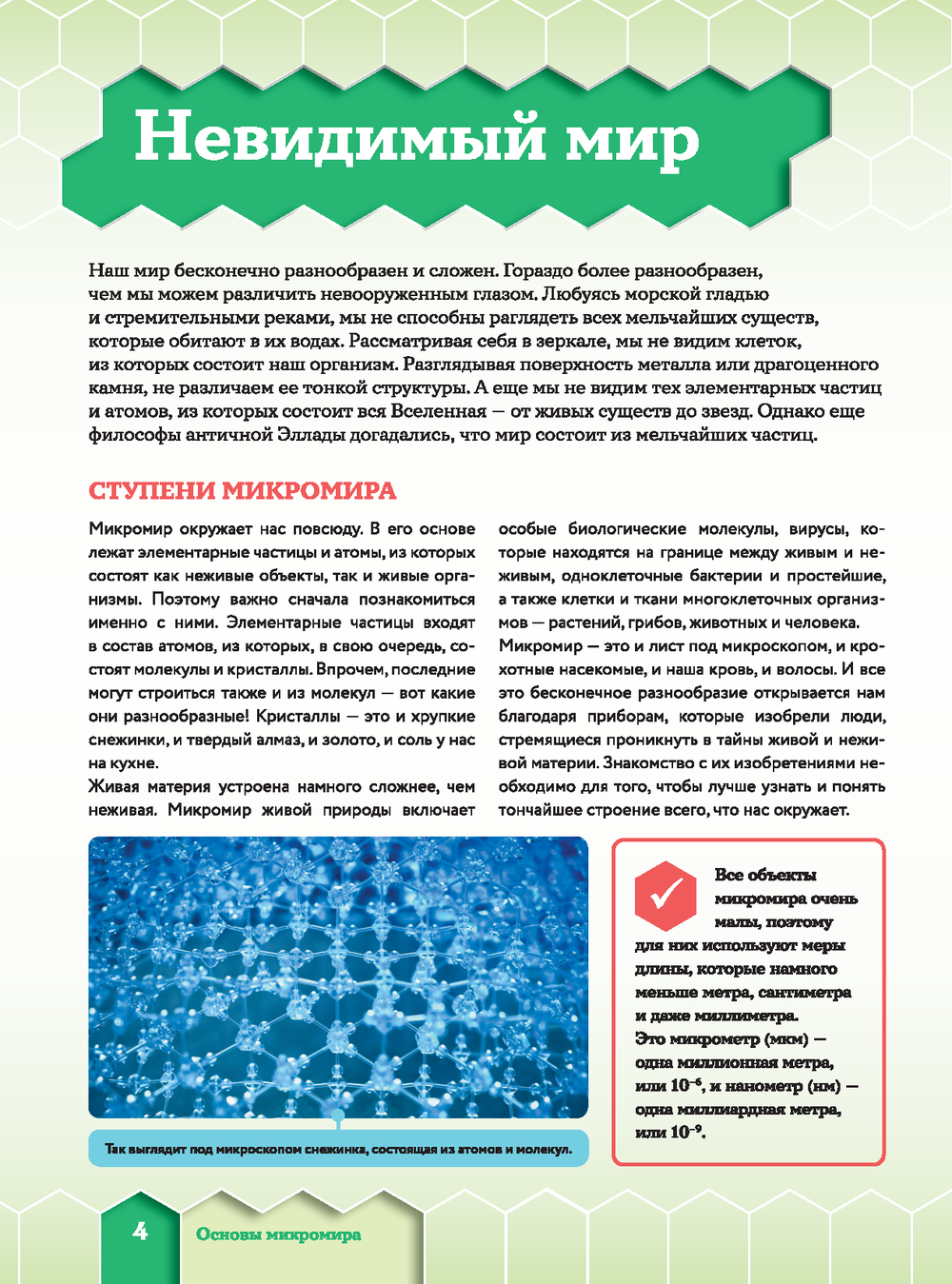 Мир, если его рассматривать под микроскопом, выглядит совершенно не так, как мы себе его представляем. При увеличении в сотни или даже тысячи раз волос превращается в ствол дерева с толстой корой, песчинки – в россыпь причудливых кристаллов, а миллиметровая мошка – в грозное существо с огромными глазами-фасетками, зубастой челюстью, длинным хоботом-пилой и большими мохнатыми лапами. Листая страницы этого уникального издания с дополненной реальностью, вы погрузитесь в микромир – невероятную скрытую "вселенную", состоящую из молекул, атомов, нейтронов и других мельчайших частиц. Взгляните на свою ладонь: сквозь нее прямо в этот миг пролетает триллион нейтрино, испущенных Солнцем. Правда, вы этого не замечали? Да, микромир не виден невооруженным глазом, но готов раскрыть свои секреты юным любителям науки.