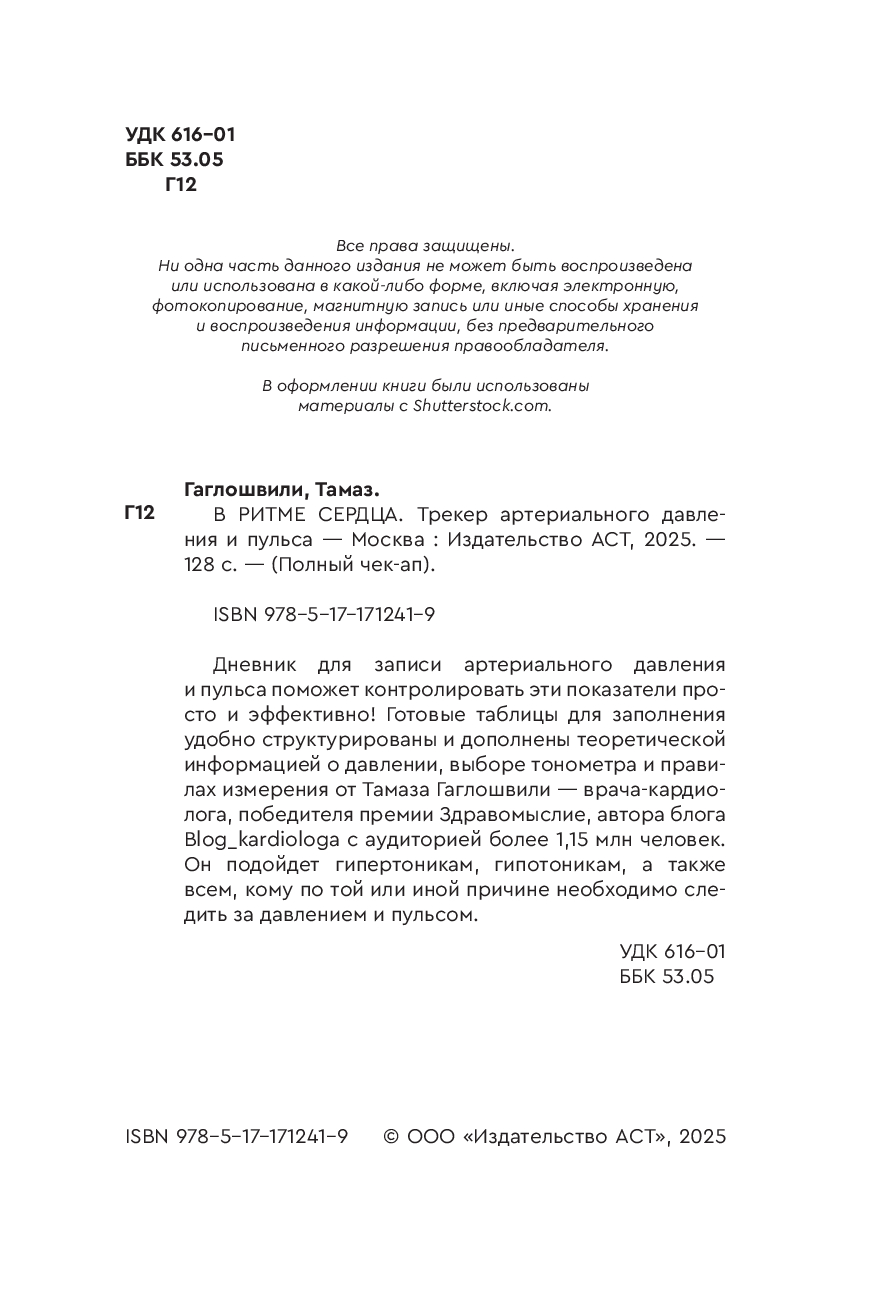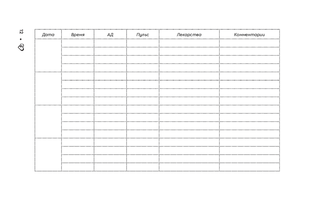 Дневник для записи артериального давления и пульса поможет контролировать эти показатели просто и эффективно! Готовые таблицы для заполнения удобно структурированы и дополнены теоретической информацией о давлении, выборе тонометра и правилах измерения от Тамаза Гаглошвили – врача-кардиолога, победителя премии Здравомыслие, автора блога Blog_kardiologa с аудиторией более 1,15 млн человек. Он подойдет гипертоникам, гипотоникам, а также всем, кому по той или иной причине необходимо следить за давлением и пульсом.