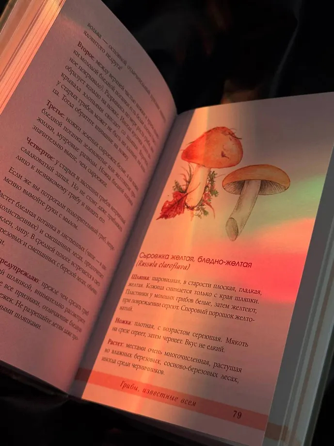 Этот иллюстрированный определитель поможет вам легко распознавать съедобные и несъедобные грибы, уверенно отличать их от опасных двойников и находить интересные и вкусные виды в разное время года.