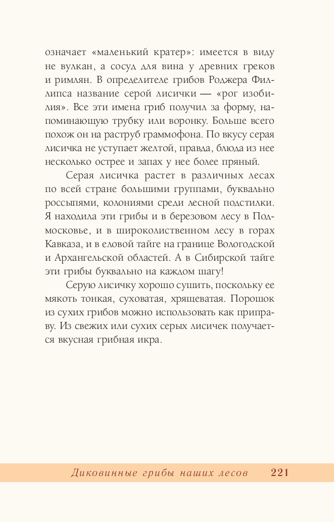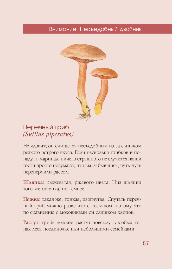 Понятная теория, яркие авторские иллюстрации, точные описания и удобный формат делают этот определитель надежным спутником на "тихой охоте" – как для новичков, делающих первые шаги в лесу, так и для опытных грибников.