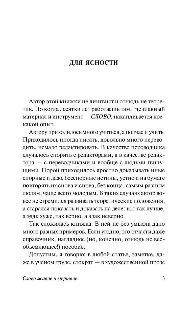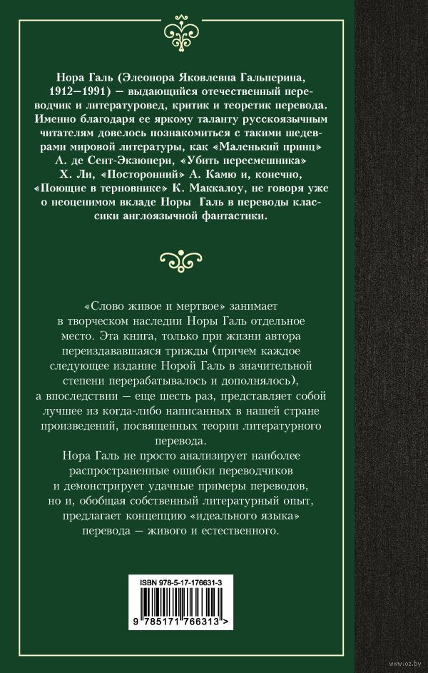 "Слово живое и мертвое" занимает в творческом наследии Норы Галь отдельное место. Эта книга, только при жизни автора переиздававшаяся трижды (причем каждое следующее издание Норой Галь в значительной степени перерабатывалось и дополнялось), а впоследствии – еще шесть раз, представляет собой лучшее из когда-либо написанных в нашей стране произведений, посвященных теории литературного перевода.
