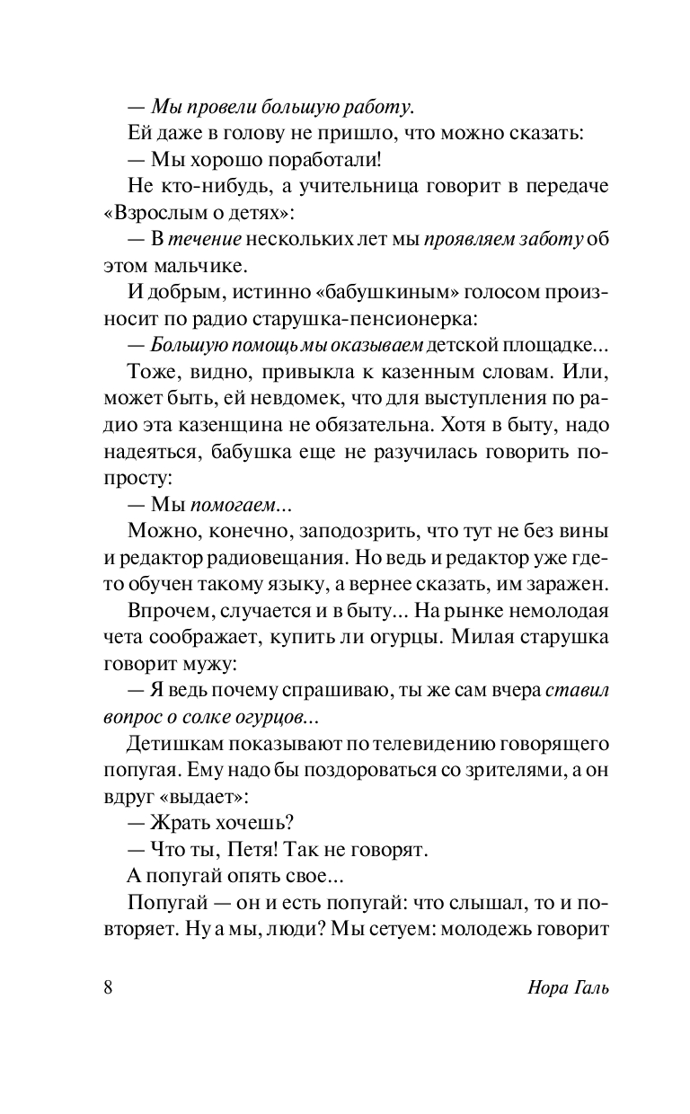 Нора Галь не просто анализирует наиболее распространенные ошибки переводчиков и демонстрирует удачные примеры переводов, но и, обобщая собственный литературный опыт, предлагает концепцию "идеального языка" перевода – живого и естественного.