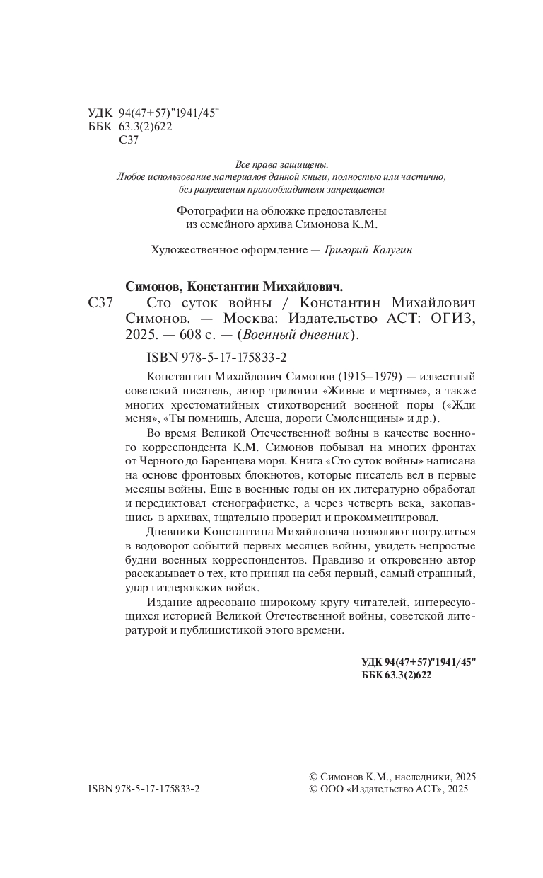 Дневники Константина Михайловича позволяют погрузиться в водоворот событий первых месяцев войны, увидеть непростые будни военных корреспондентов. Правдиво и откровенно автор рассказывает о тех, кто принял на себя первый, самый страшный, удар гитлеровских войск.
