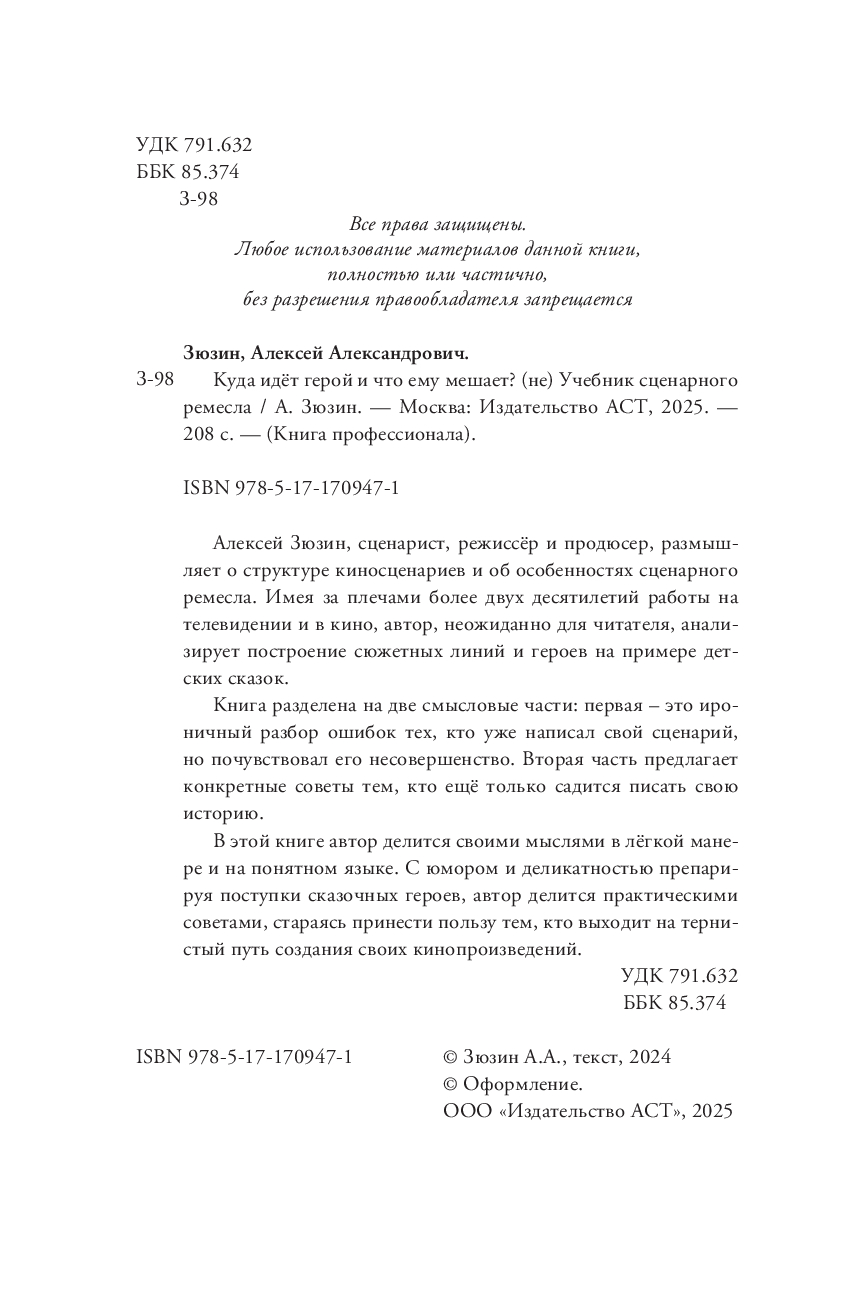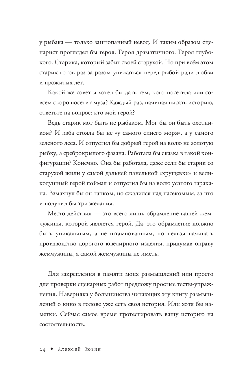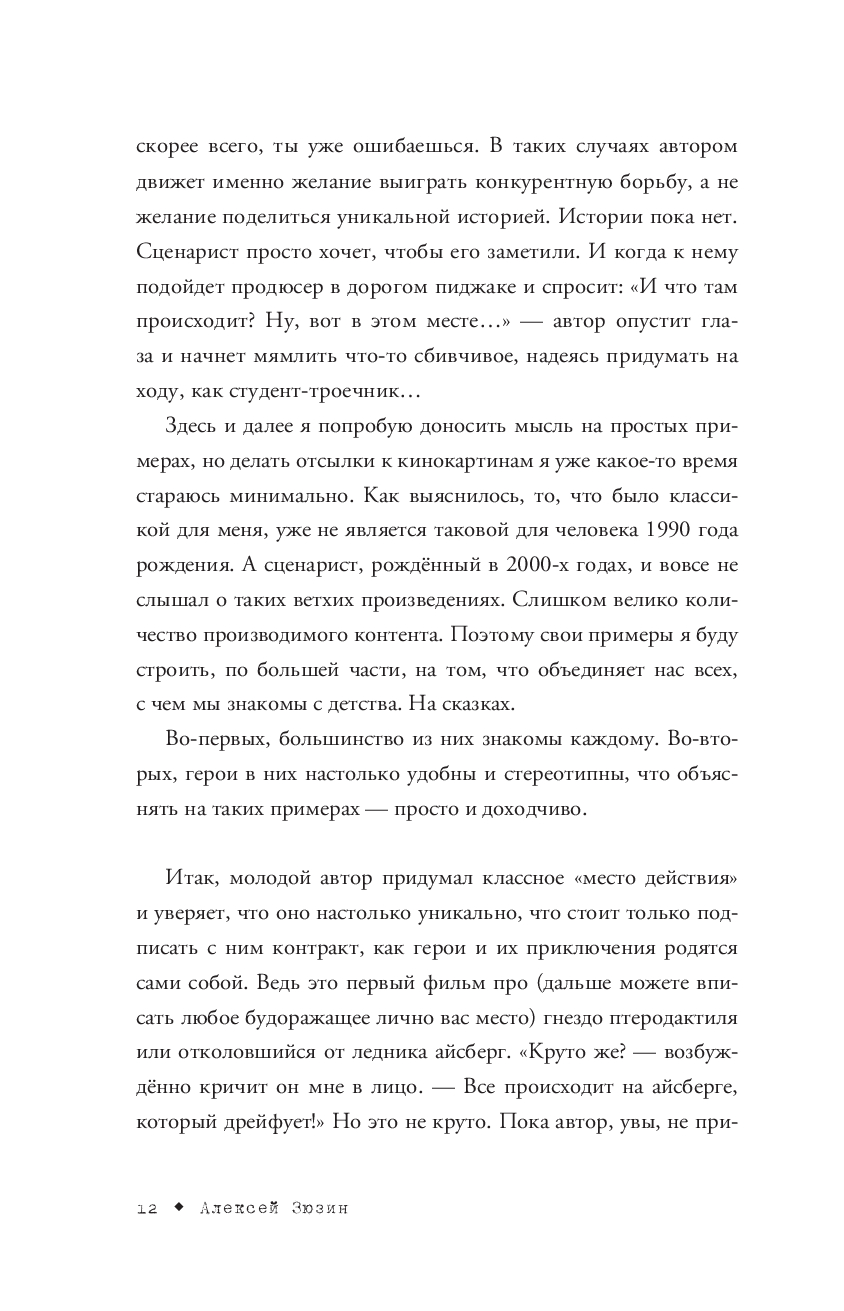 Алексей Зюзин, сценарист, режиссёр и продюсер, размышляет о структуре киносценариев и об особенностях сценарного ремесла. Имея за плечами более двух десятилетий работы на телевидении и в кино, автор, неожиданно для читателя, анализирует построение сюжетных линий и героев на примере детских сказок.