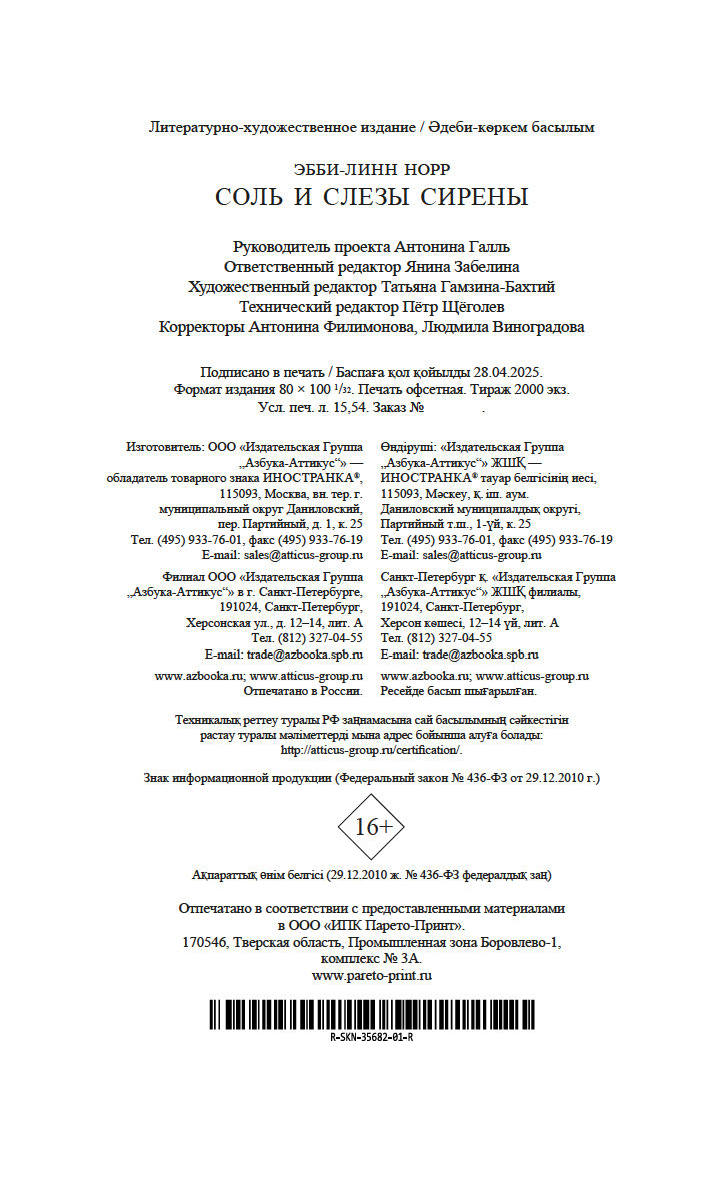 | Изготовитель | ООО "Издательство "Иностранка". 109017, РФ, г. Москва, ул. Пятницкая, 41 |