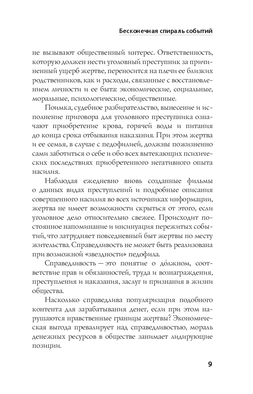 Эта книга откроет глаза на важную составляющую любого преступления, на которую в последнее время, к сожалению, уделяется мало "экранного времени" – на жертву. Тогда, когда общественное порицание потеряло свою суть, пора задуматься о действительно важных вещах.
