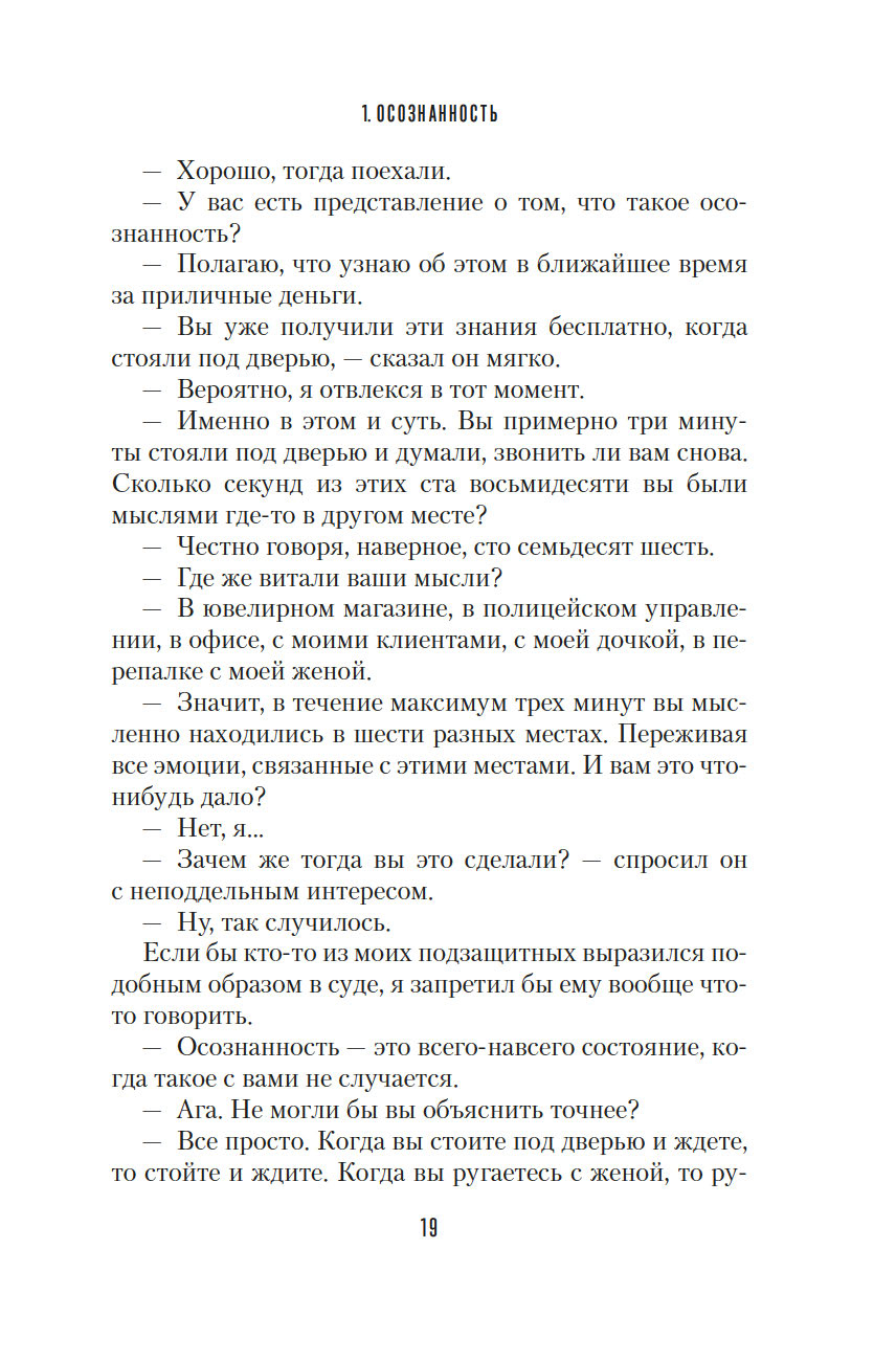 Бьорн Димель – "грязный адвокатишка", вынужденный прикрывать и оправдывать преступления большого криминального авторитета. Брак Бьорна разваливается на части, его жена вот-вот сбежит с обожаемой дочкой в неопределенном направлении. В отчаянии мужчина записывается на тренинг по осознанности. Он еще не знает, что осознанность – замечательный способ справиться со всеми проблемами, как внутренними, так и внешними. Строго следуя руководству духовного гуру, Бьорн кардинально меняет свою судьбу и глазом не успевает моргнуть, как оказывается в эпицентре кровавых разборок. Когда его клиент, жестокий преступник, начинает доставлять серьезные неприятности, Димель решает проблему в соответствии со всеми принципами осознанности – хладнокровно и без лишних промедлений.