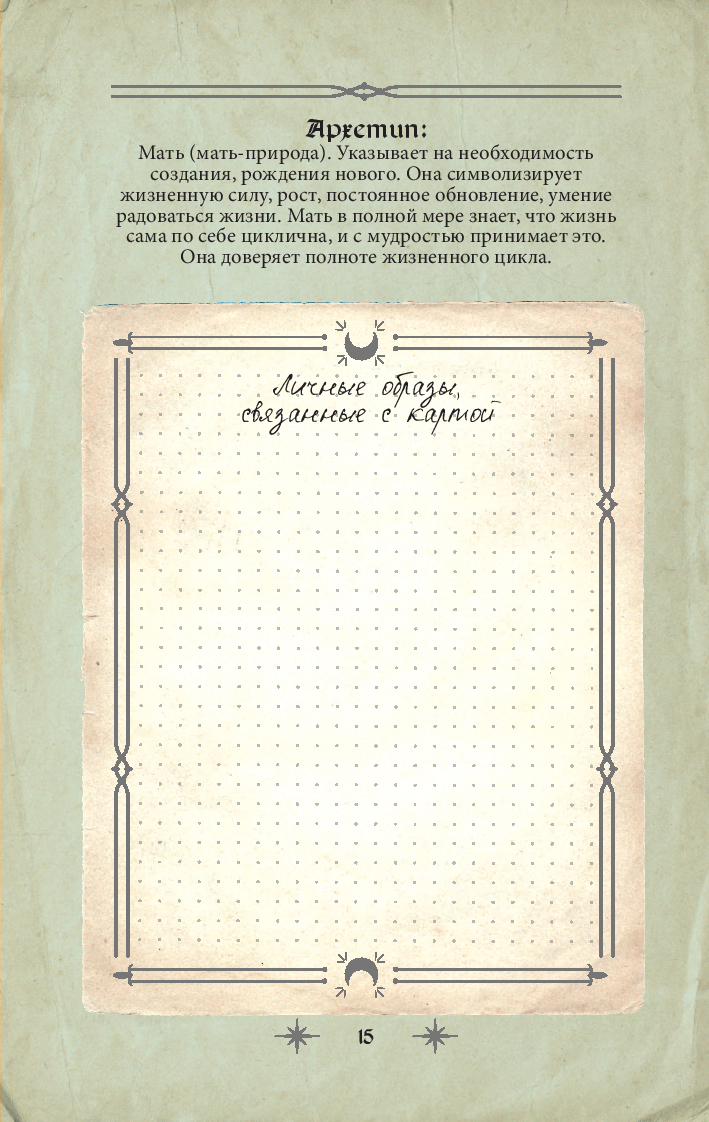 Этот гримуар – личный архив, который поможет сохранить важные моменты вашего пути в мире Таро. Благодаря удобной структуре, вы сможете легко возвращаться к записям, дополнять их и использовать в ежедневной практике.