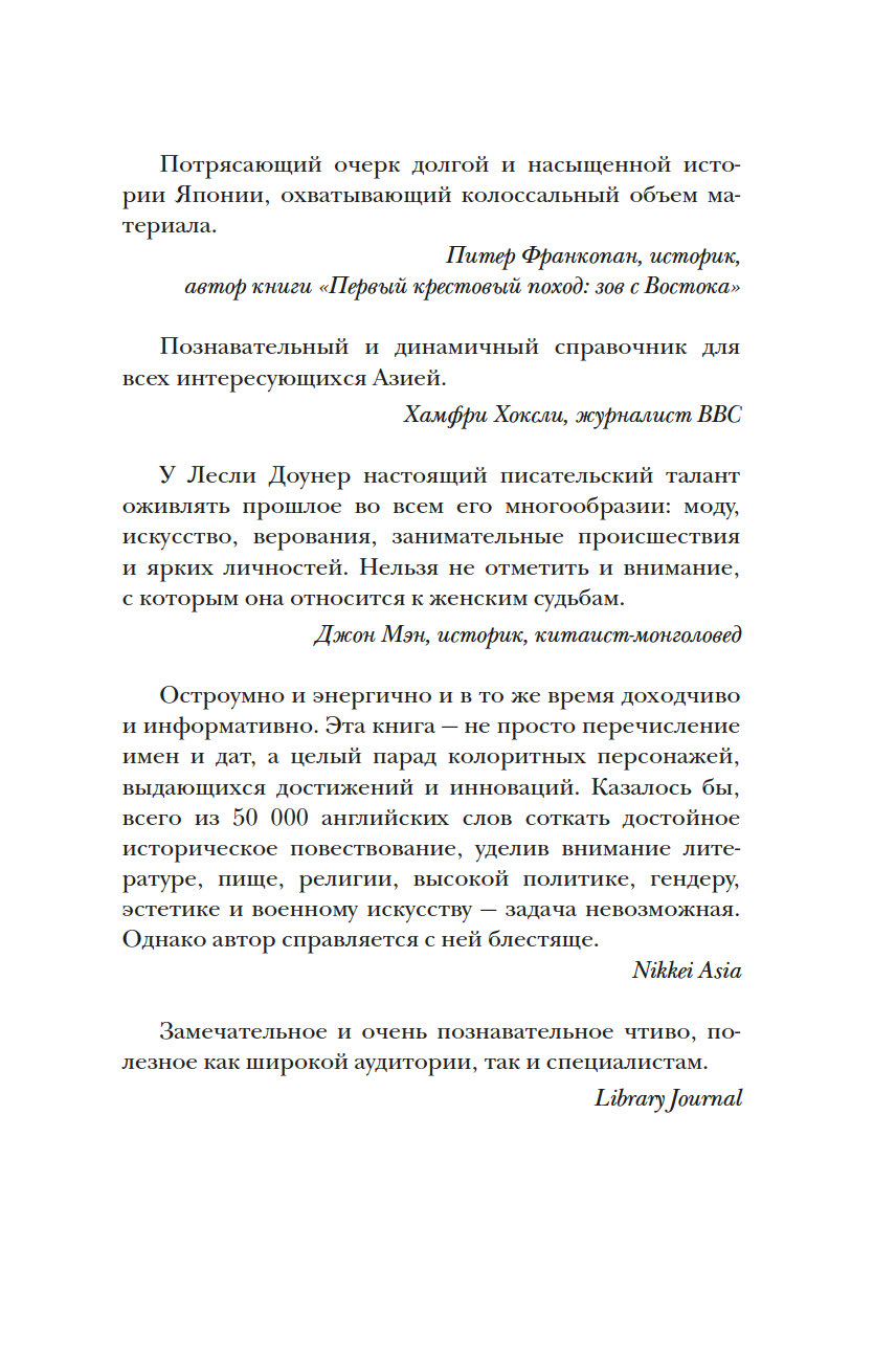 Родина сакуры и аниме, ультрасовременная страна, в которой царит чистота, ходят самые быстрые поезда и дремлют гигантские вулканы – таким сегодня видят Японский архипелаг. Страна многих тысяч островов, Япония долгое время была загадкой для европейцев. Как первые японцы оказались на островах? Кто на самом деле стоял за императорами и сёгунами прошлого? Во что верят японцы – и верят ли во что-то вообще? Почему более двух столетий Япония была закрыта от внешнего мира? В этой книге, напоминающей увлекательный приключенческий роман, эксперт по японской культуре Лесли Доунер, прожившая в стране более десяти лет, отвечает на множество вопросов. Вы познакомитесь с царицей-шаманкой Химико, поэтом Басё, художниками Утамаро и Хокусаем и другими знаменитыми японцами – людьми, сделавшими Японию такой, какой мы знаем ее сейчас.