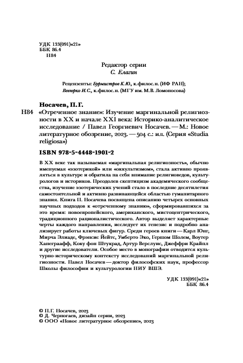 Книга П. Носачева посвящена описанию четырех основных научных подходов к "отреченному знанию", сформировавшихся за это время: новоевропейского, американского, мистоцентрического, традиционного рационалистического.