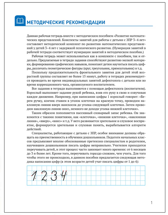 Данная рабочая тетрадь вместе с методическим пособием "Развитие математических представлений. Конспекты занятий для работы с детьми с ЗПР 3-4 лет" составляет методический комплект по развитию математических представлений у детей 3–4 лет с задержкой психического развития. (Нумерация занятий в рабочей тетради соответствует нумерации занятий в методическом пособии.)