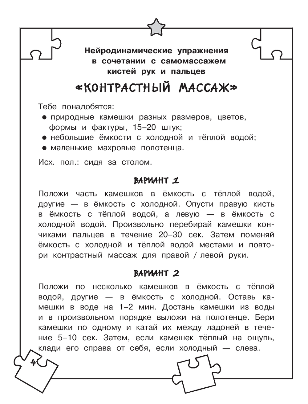 Тренажёр Татьяны Трясоруковой, опытного педагога и психолога, содержит пять комплексов пальчиковых нейропсихологических упражнений. Они направлены на поддержание координационно-интегрированной деятельности мозга ребёнка младшего школьного возраста. Эффективные игровые задания обеспечивают