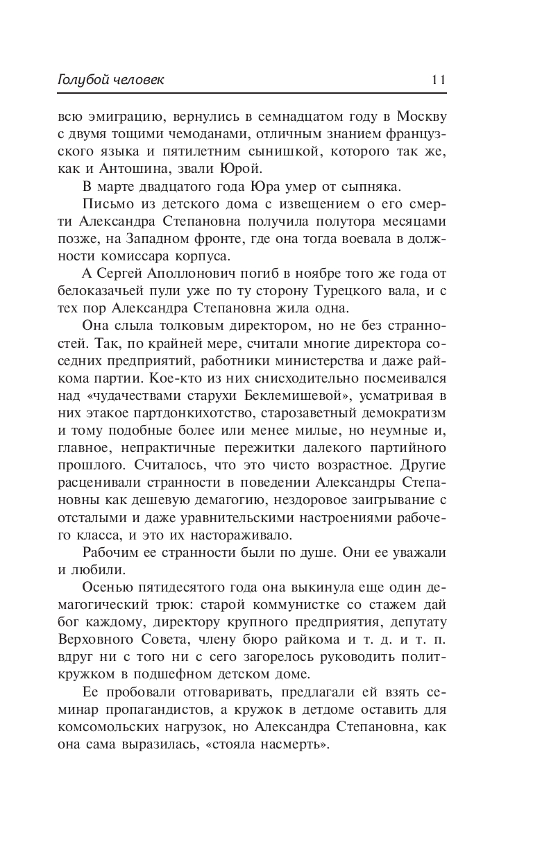 Фантастический роман "Голубой человек" Лазарь Лагин писал долгих семь лет, с 1957 по 1964 год. В него автор вложил свои представления и мечты об образцовом советском человеке. Главный герой Юра Антошин, студент Энергетического института и убежденный социалист, случайным образом перемещается из 1959 в 1893 год и, погрузившись в быт и культуру царской России конца XIX века, убеждается в правоте своих взглядов и создает подпольный коммунистический кружок. "Голубой человек" в представлении писателя – идеалист и революционер, который способен "заглядывать повыше своего личного благополучия".