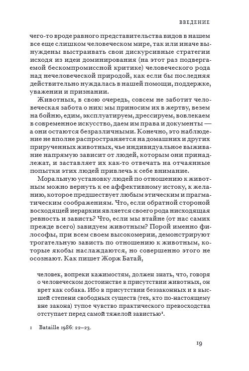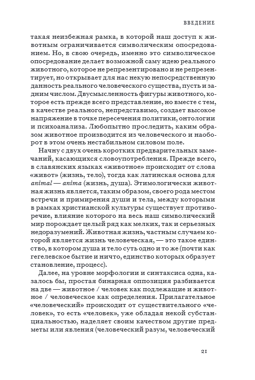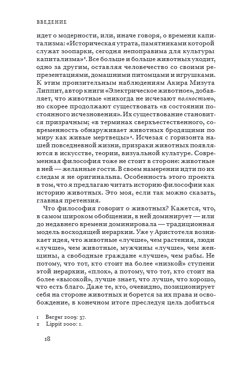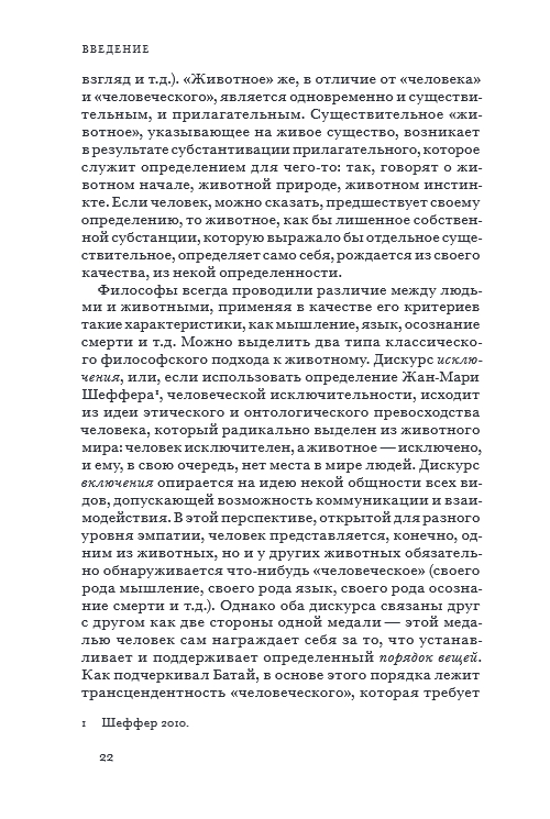 Перед нами опыт не столько даже философской зоологии, сколько философской антропологии, отличающейся от классических антропологических и по умолчанию антропоцентричных учений тем, что обращается не к центру, в который помещает себя человек, уверенный в собственной исключительности, но к периферии и границам человеческого.