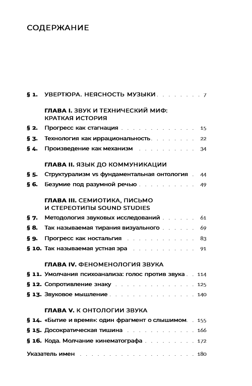 Обращаясь к концепциям Мартина Хайдеггера, Жака Деррида, Жан-Люка Нанси и Младена Долара, автор рассматривает звук и вслушивание как точки пересечения семиотического, психоаналитического и феноменологического дискурсов, но одновременно – как загадочные лакуны в истории мысли.