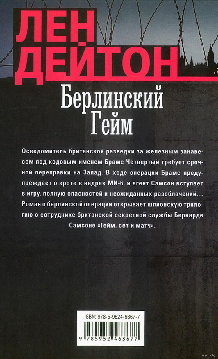 Осведомитель британской разведки за железным занавесом под кодовым именем Брамс Четвертый требует срочной переправки на Запад. В ходе операции Брамс предупреждает о кроте в недрах МИ-6, и агент Сэмсон вступает в игру, полную опасностей и неожиданных разоблачений… Роман о берлинской операции открывает шпионскую трилогию о сотруднике британской секретной службы Бернарде Сэмсоне "Гейм, сет и матч".