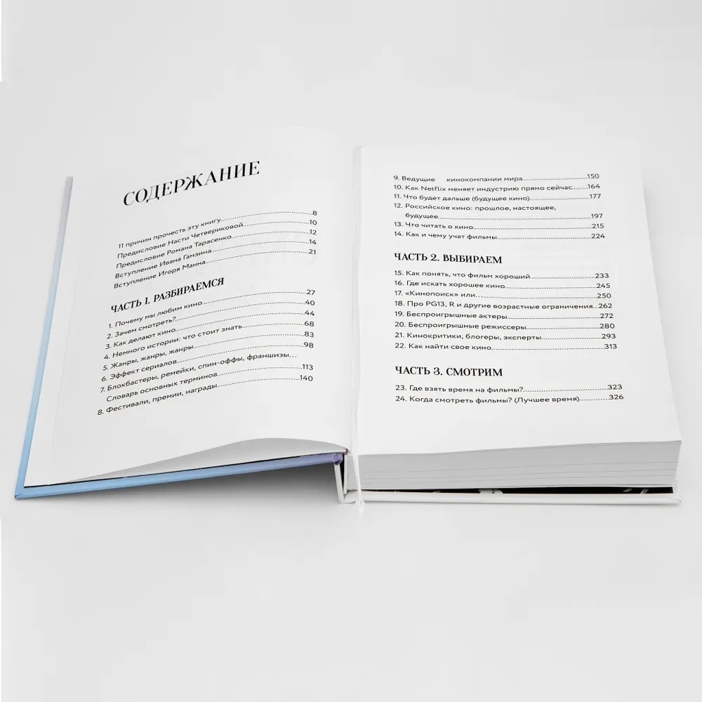 "Надеюсь, что получился легкий, увлекательный сборник советов для тех, кто не хочет заблудиться в мире кино, желает узнать, куда идти и что смотреть, и не намерен тратить время на долгий поиск в интернете. Больше всего я горжусь нашими приложениями, где мы постарались объять необъятное и вспомнить все лучшее кино, которое смотрели", представляет книгу один из авторов, историк кино и рецензент Иван Гамзин.