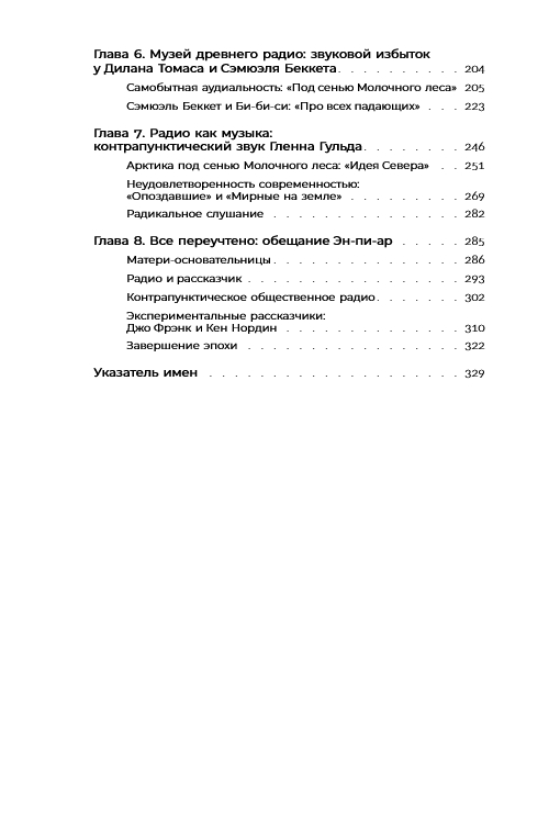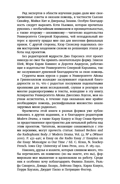 Среди героев его книги – Орсон Уэллс, Сэмюэл Беккет, Дилан Томас, Гленн Гульд и множество других деятелей, увидевших в радио не просто новое средство передачи информации, а пространство принципиально новой формы искусства.
