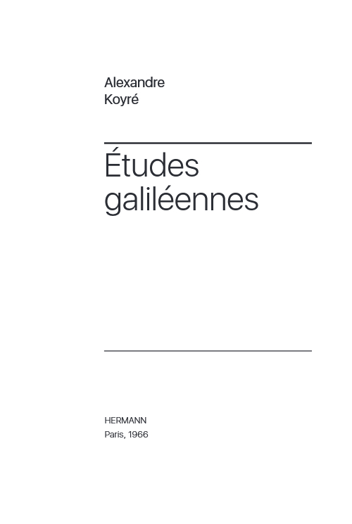 Одна из первых монографий Александра Койре – "Этюды о Галилее" – представляет собой три, по словам самого автора, независимых друг от друга работы, которые, тем не менее, складываются в единое целое.