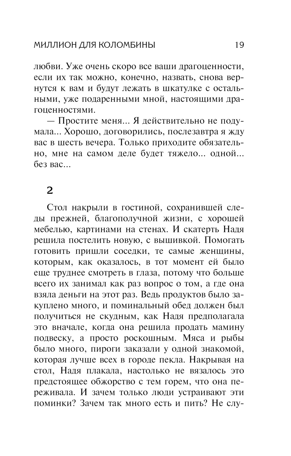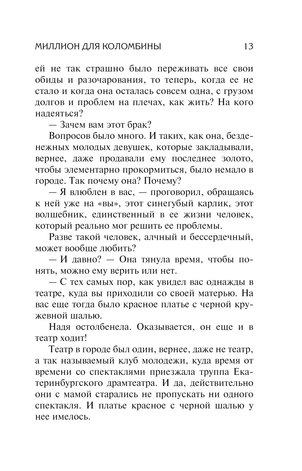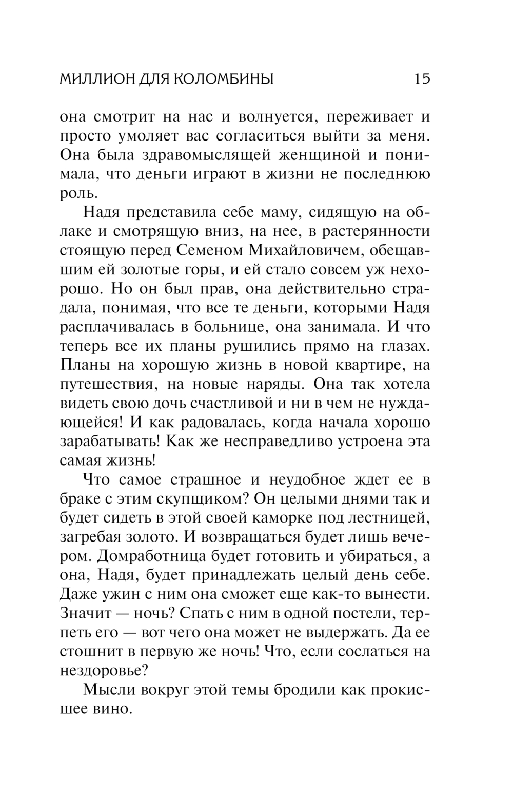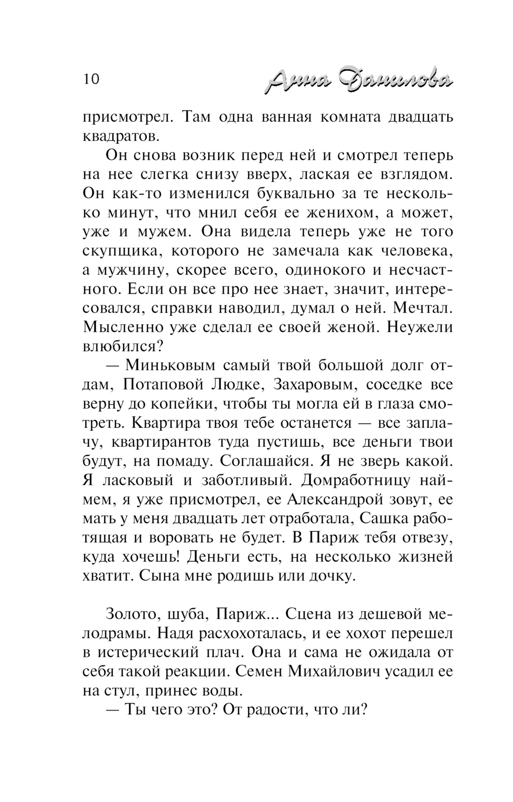 После смерти любимой матери Надина жизнь превратилась в ад. Девушка понимает, что как бы она ни старалась, она не сможет раздать долги, поэтому соглашается выйти замуж за старика Липкина, который обещает ее озолотить. Но на поминках девушка знакомится с Григорием, который скрывается от преследования. По его словам, он украл огромную сумму из сейфа своего работодателя, и теперь все, что ему остается – это бежать. И, если Надя хочет, то может составить ему компанию…