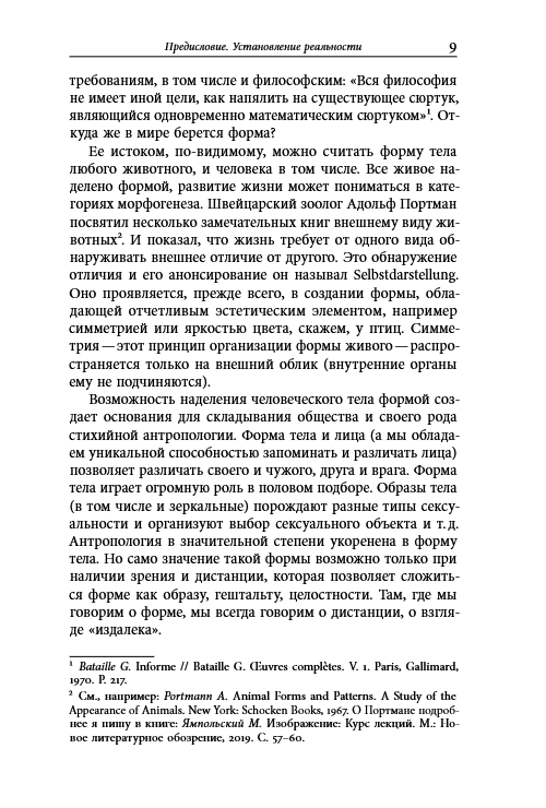 Именно поэтому автор предлагает рассматривать этот труд как набросок нового подхода к теоретической антропологии, сквозь призму которого Ямпольский рассматривает варианты возникновения форм внешнего и внутреннего миров, обращает внимание как на их взаимопроникновение, так и распад, особенно актуальный в наши дни.