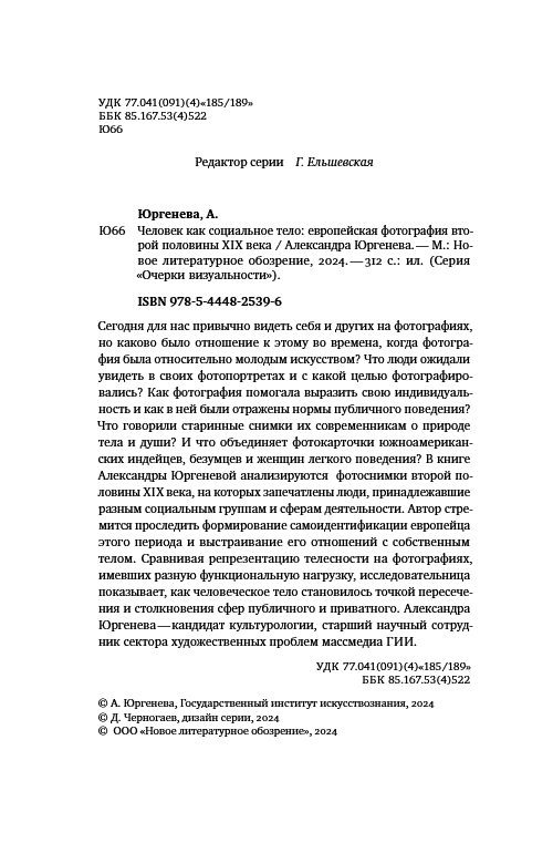 В книге Александры Юргеневой анализируются фотоснимки второй половины XIX века, на которых запечатлены люди, принадлежавшие разным социальным группам и сферам деятельности.