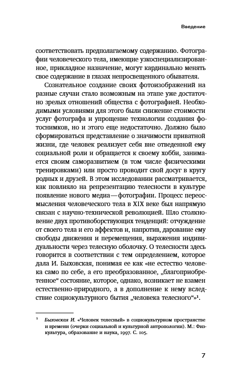 Автор стремится проследить формирование самоидентификации европейца этого периода и выстраивание его отношений с собственным телом. Сравнивая репрезентацию телесности на фотографиях, имевших разную функциональную нагрузку, исследовательница показывает, как человеческое тело становилось точкой пересечения и столкновения сфер публичного и приватного.
