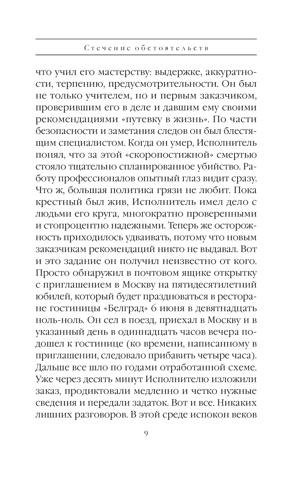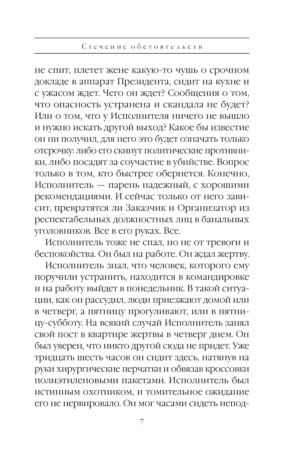 Таково стечение обстоятельств: она вычислила киллера, его сообщников, но для того, чтобы получить неопровержимые доказательства, ей надо "раскрутить" расчетливого и хладнокровного профи по всей программе. Вот она и старается, отчетливо понимая, что любое неосторожное слово или движение может стоить ей жизни.