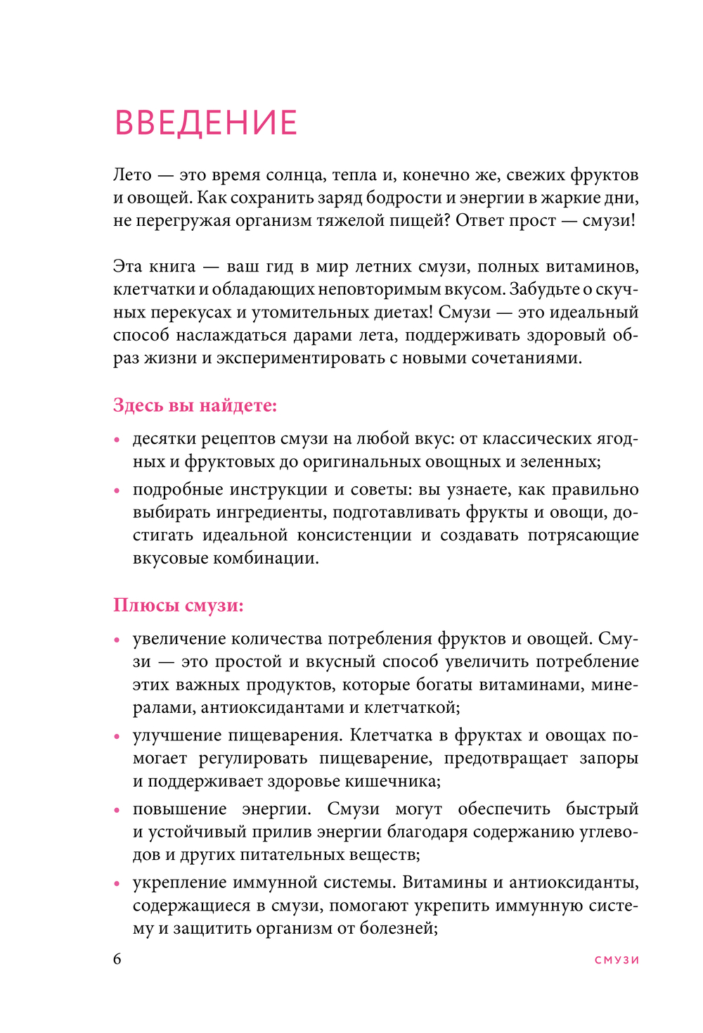 Эта книга – ваш гид в мир летних смузи, полных витаминов, клетчатки и обладающих неповторимым вкусом. Забудьте о скучных перекусах и утомительных диетах! Смузи – это идеальный способ наслаждаться дарами лета, поддерживать здоровый образ жизни и экспериментировать с новыми сочетаниями.