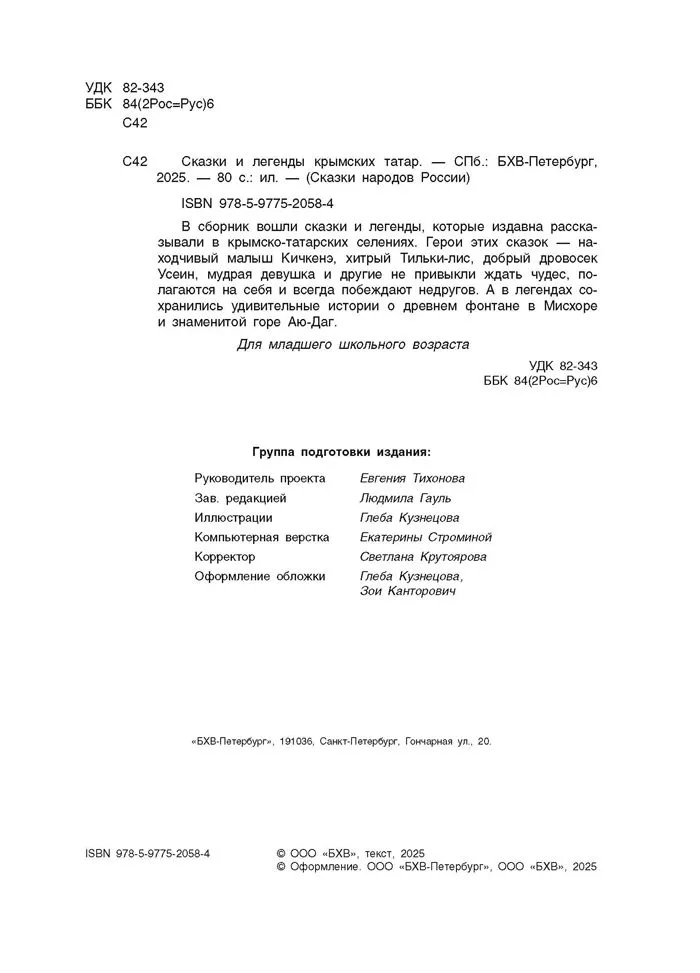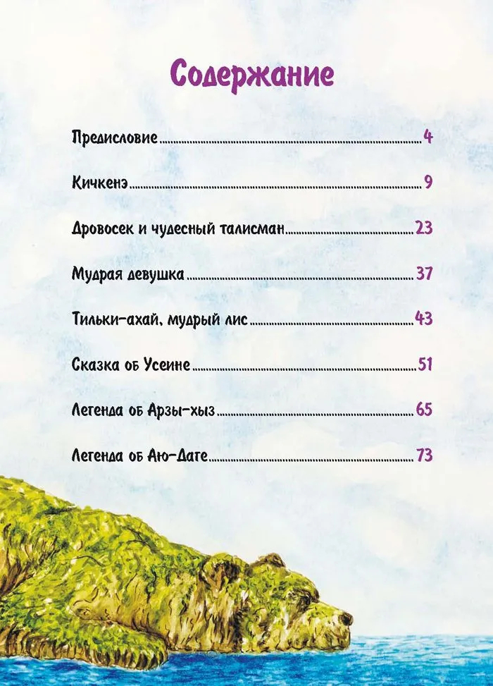 В сборник вошли сказки и легенды, которые издавна рассказывали в крымско-татарских селениях. Герои этих сказок – находчивый малыш Кичкенэ, хитрый Тильке-лис, добрый дровосек Усеин, мудрая девушка и другие не привыкли ждать чудес, полагаются на себя и всегда побеждают недругов. А в легендах сохранились удивительные истории о древнем фонтане в Мисхоре и знаменитой горе Аю-Даг.