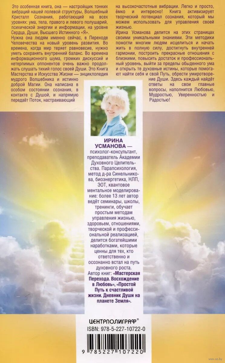 Своими знаниями Ирина Усманова делится на страницах этой книги. Уникальные авторские методики помогли многим людям исцелиться и начать жить в полную силу, достигнуть внутренней гармонии, построить прекрасные отношения с близкими, повысить свой достаток и профессиональный уровень, выйти за пределы обыденного ума и открыть те духовные истины, которые помогают найти себя и свой Путь, обрести умиротворение Души.