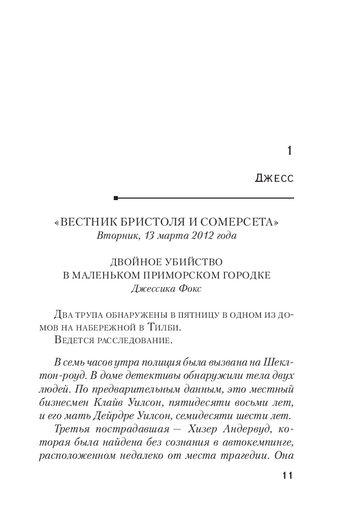 Джессика – молодая амбициозная журналистка, приехавшая в Тилби за сенсацией. Но никто не знает, что ее интерес носит куда более личный характер, ведь когда-то она была лучшей подругой Хизер Пауэлл. Девушка уверена: именно Хизер – последняя, кто видел Флору живой....