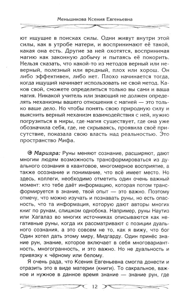 В этой книге мы немного поговорим о рунах и узнаем, что руны это многоуровневая, многослойная система познания, трансформации, управления, это порталы, это каналы, это ключи и связи. Изучим правила вхождения в руны. Узнаем, возможно ли совмещение магии и религии. Получим информацию о том, можно ли смешивать в одной магической формуле несколько традиций. Прочитаем, как правильно закрыть долги при переходе из христианства в язычество и как определить, велика ли эта задолженность. А также поймём, в чём выражается эгрегориальная зависимость и как от неё избавиться.