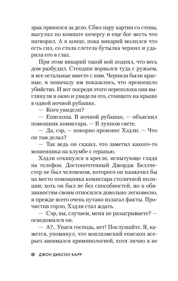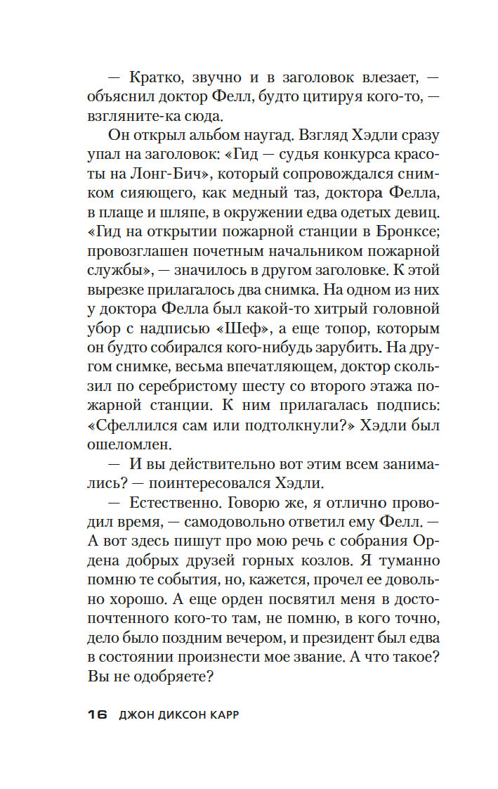 Золотой век детектива подарил нам множество звездных имен. Произведения таких писателей, как Агата Кристи, Гилберт Честертон, Эрл Стэнли Гарднер, Рекс Стаут, развивали и совершенствовали детективный жанр, их романы, безоговорочно признанные классикой, по сей день любимы читателями и являются эталоном качества для последующих поколений авторов детективных историй. Почетное место в этой плеяде по праву принадлежит Джону Диксону Карру (1906–1977) – виртуозному мастеру идеально построенных "невозможных преступлений в запертой комнате".