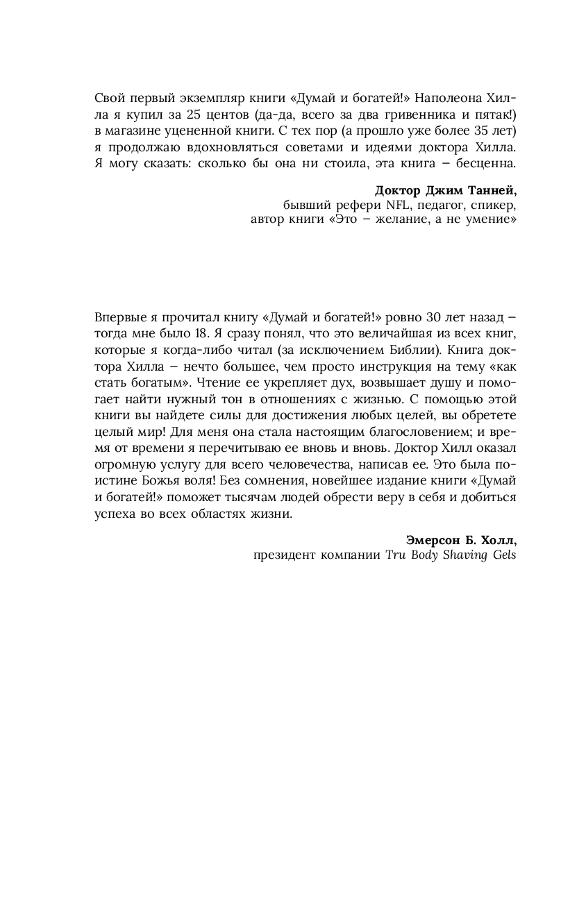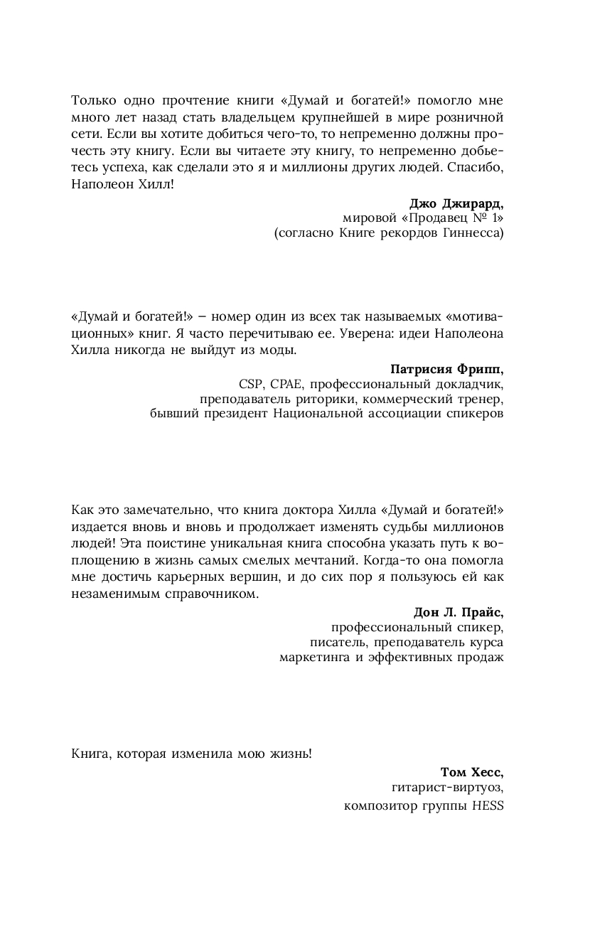 К этой книге можно возвращаться вновь и вновь, открывая новые секреты достижения богатства и изучая законы успеха, которыми лидеры бизнеса пользуются до сих пор!