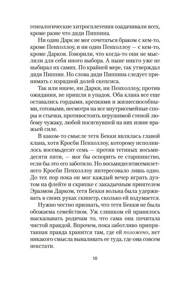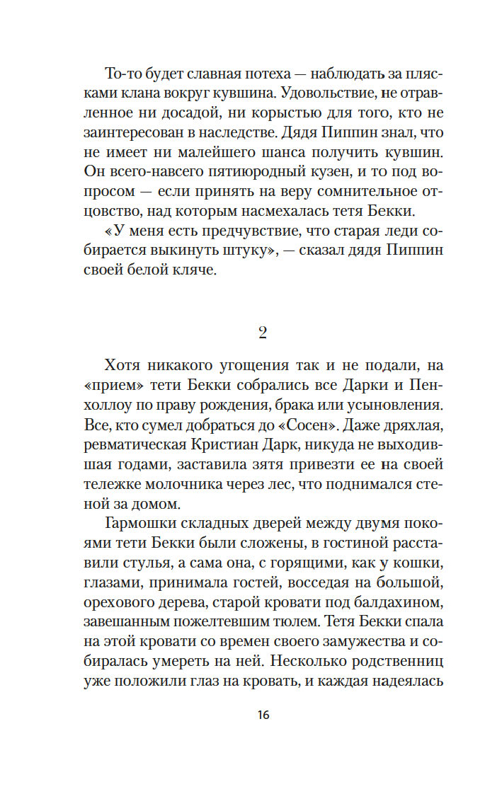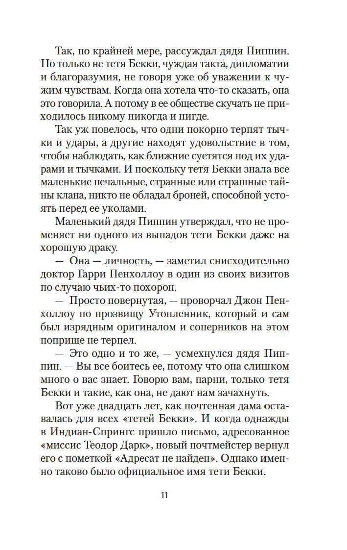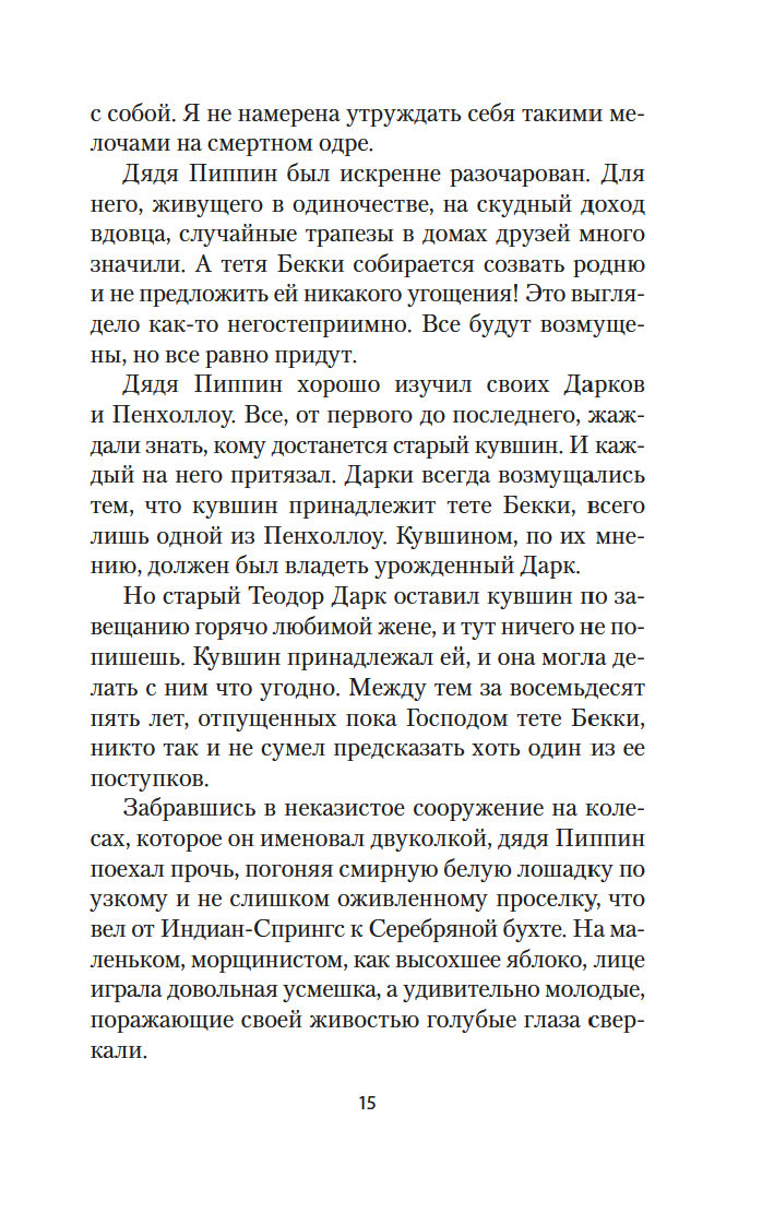 На острове Принца Эдуарда почетной главой двух старинных семейств Дарков и Пенхоллоу единодушно признавалась тетушка Бекки. Этой восьмидесятипятилетней старушке были известны все тайны, и она привыкла говорить только то, что думает, не считаясь с чувствами других людей. Однажды тетушка Бекки собрала представителей обоих кланов, чтобы огласить свою последнюю волю. Разумеется, на встречу явились все, поскольку не было на острове такого человека, который не мечтал бы заполучить ее старинный кувшин – главную реликвию Дарков и Пенхоллоу, окруженную романтическим ореолом. Однако завещание тети Бекки привело всех в замешательство, а главное – взбаламутило спокойную жизнь на острове и положило начало удивительным историям, в которых нашлось место предательству, милосердию, дружбе, зависти и, конечно, подлинной любви.