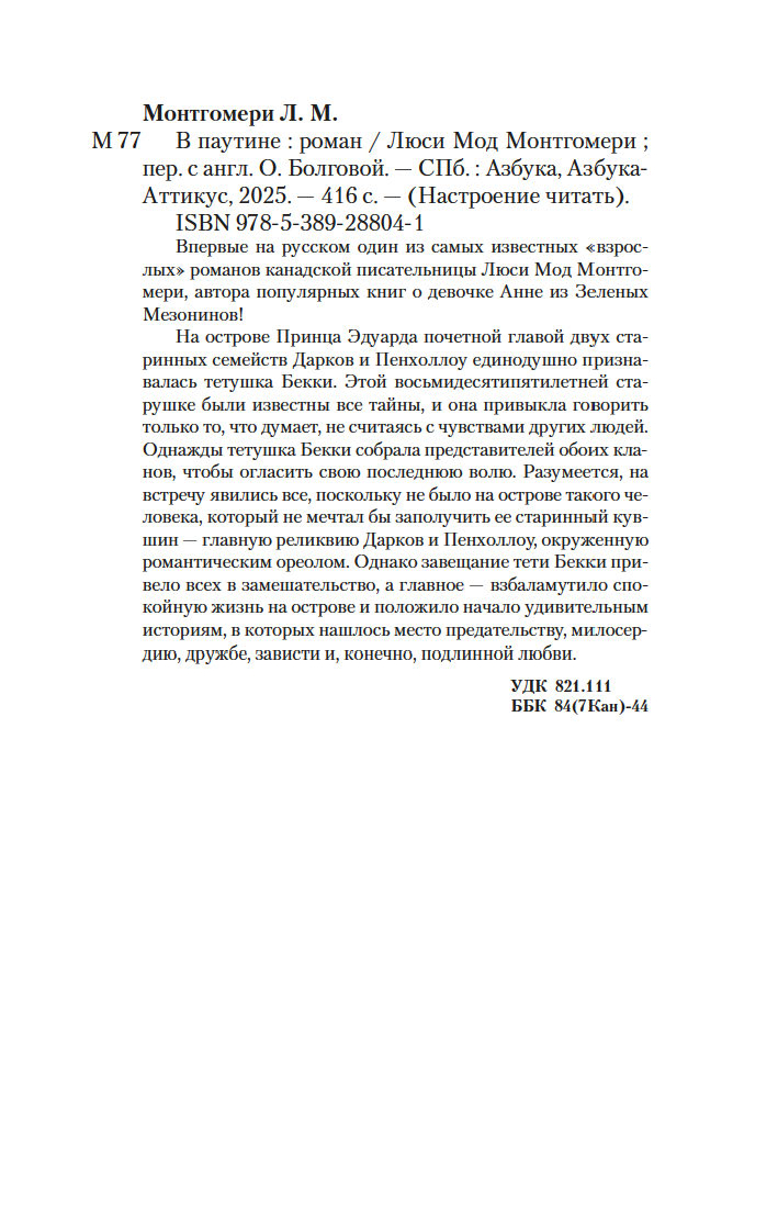 Впервые на русском один из самых известных "взрослых" романов канадской писательницы Люси Мод Монтгомери, автора популярных книг о девочке Анне из Зеленых Мезонинов!