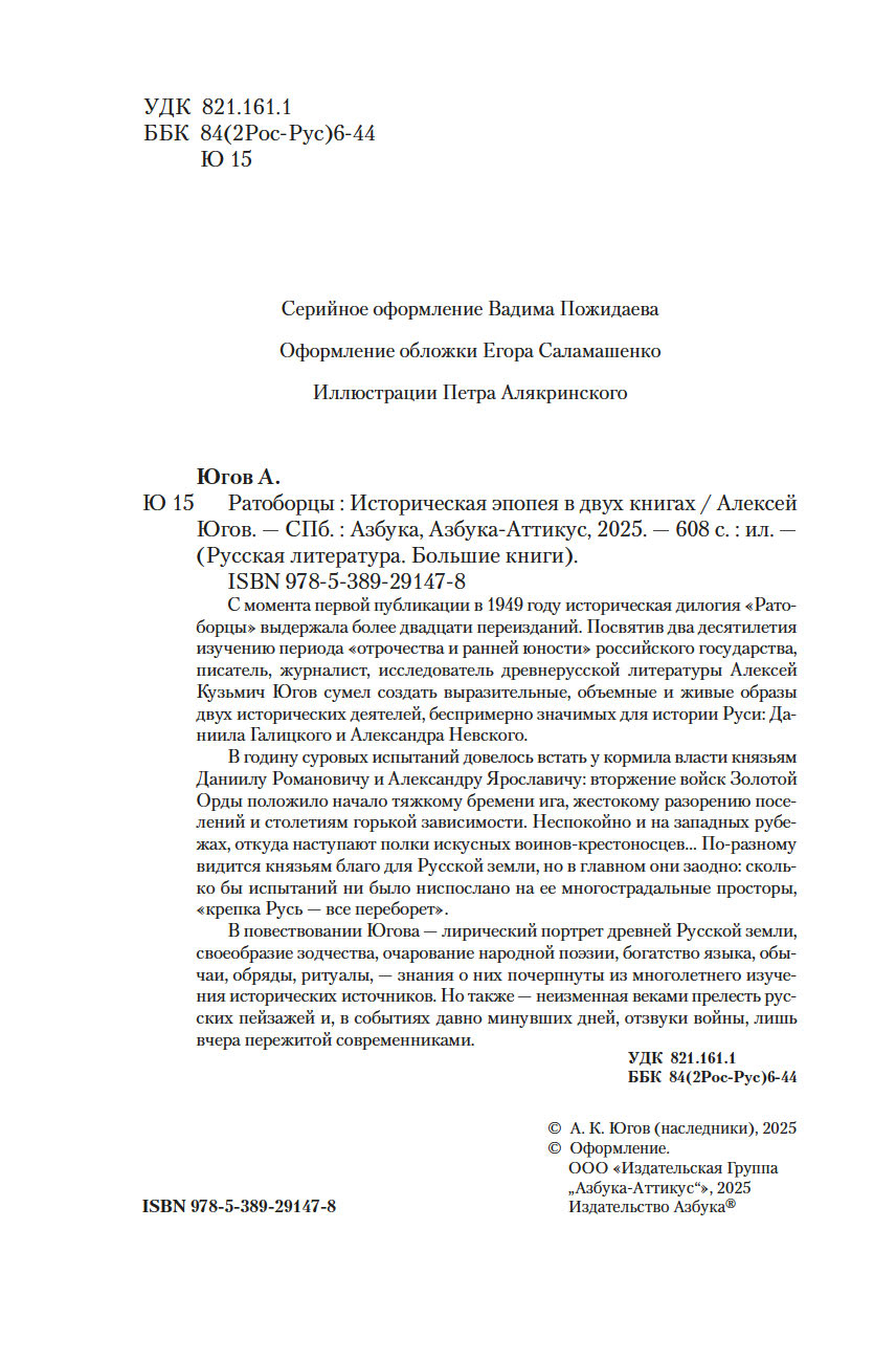 С момента первой публикации в 1949 году историческая дилогия "Ратоборцы" выдержала более двадцати переизданий. Посвятив два десятилетия изучению периода "отрочества и ранней юности" российского государства, писатель, журналист, исследователь древнерусской литературы Алексей Кузьмич Югов сумел создать выразительные, объемные и живые образы двух исторических деятелей, беспримерно значимых для истории Руси: Даниила Галицкого и Александра Невского.