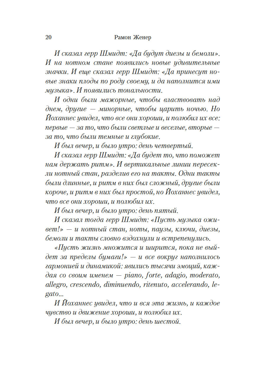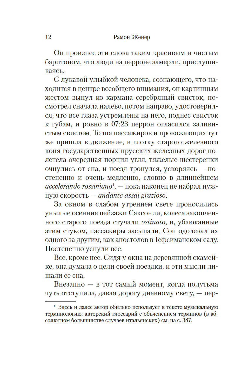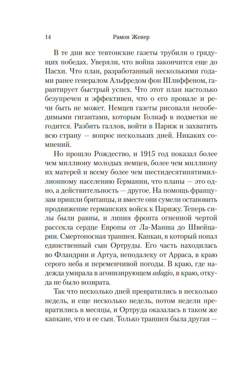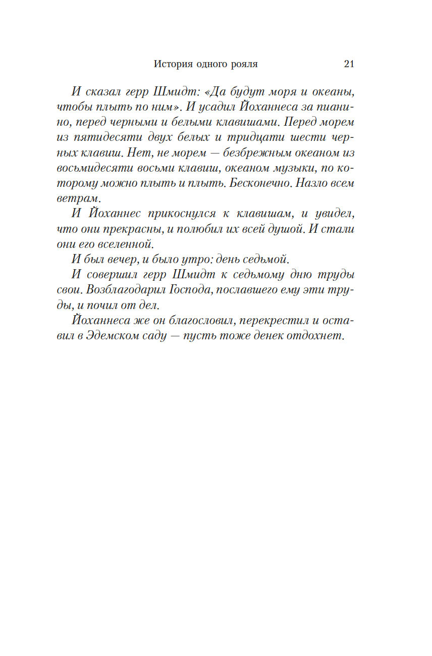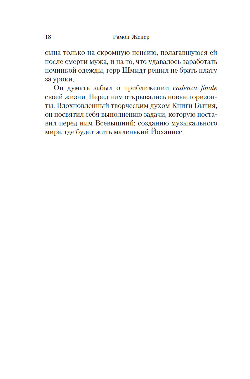 Рамон Женер, музыкант и меломан, известный по всей Европе лектор, просветитель, радио- и телеведущий, рассказывает о музыке всю свою жизнь. "История одного рояля" – его первый роман, который мгновенно стал бестселлером, переводится на десяток языков и уже принес автору премию Рамона Льюля, самую престижную каталонскую литературную награду. "История одного рояля" – сказание об истории ХХ века, роман о людях, которых связывает инструмент, по сей день стоящий дома у автора. "Там, куда не дотягивалась реальность, приходилось заполнять лакуны вымыслом, – поясняет Женер, – однако и этот вымысел основан на реальности". В истории рояля были две мировые войны, смерть и память, вина и искупление, бедствия и красота, но, конечно, больше всего в ней было музыки. Это история о высшей магии, основанная на подлинных событиях. История о том, как музыка дарует нам утешение, придает отваги и сил жить дальше, расширяет сознание, стирает границы и, даже если и не прекращает войны, хотя бы на мгновение творит прекрасный хрупкий мир.